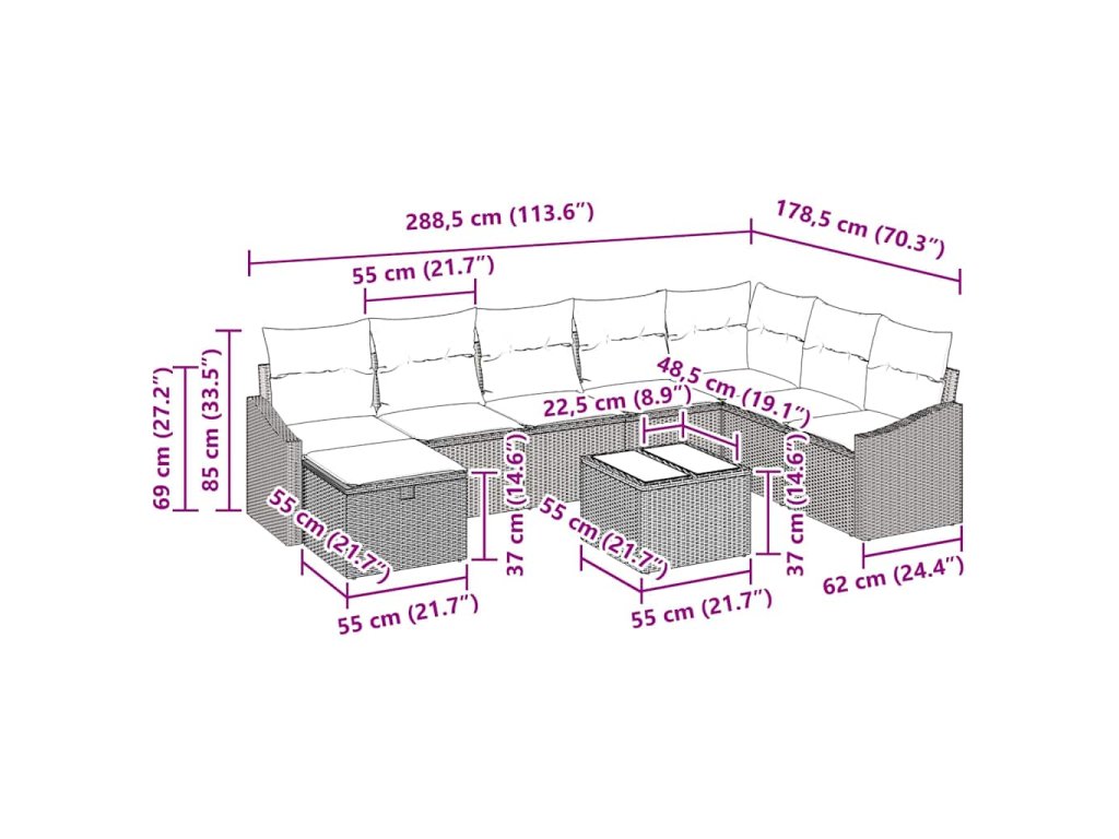 - Kompletní komponenty: S pohodlnými polštáři z polyesteru, které zvládnou všechno počasí, poly ratanovými opěrkami a elegantním designem, každá část skvěle spolupracuje pro pohodlí a styl.