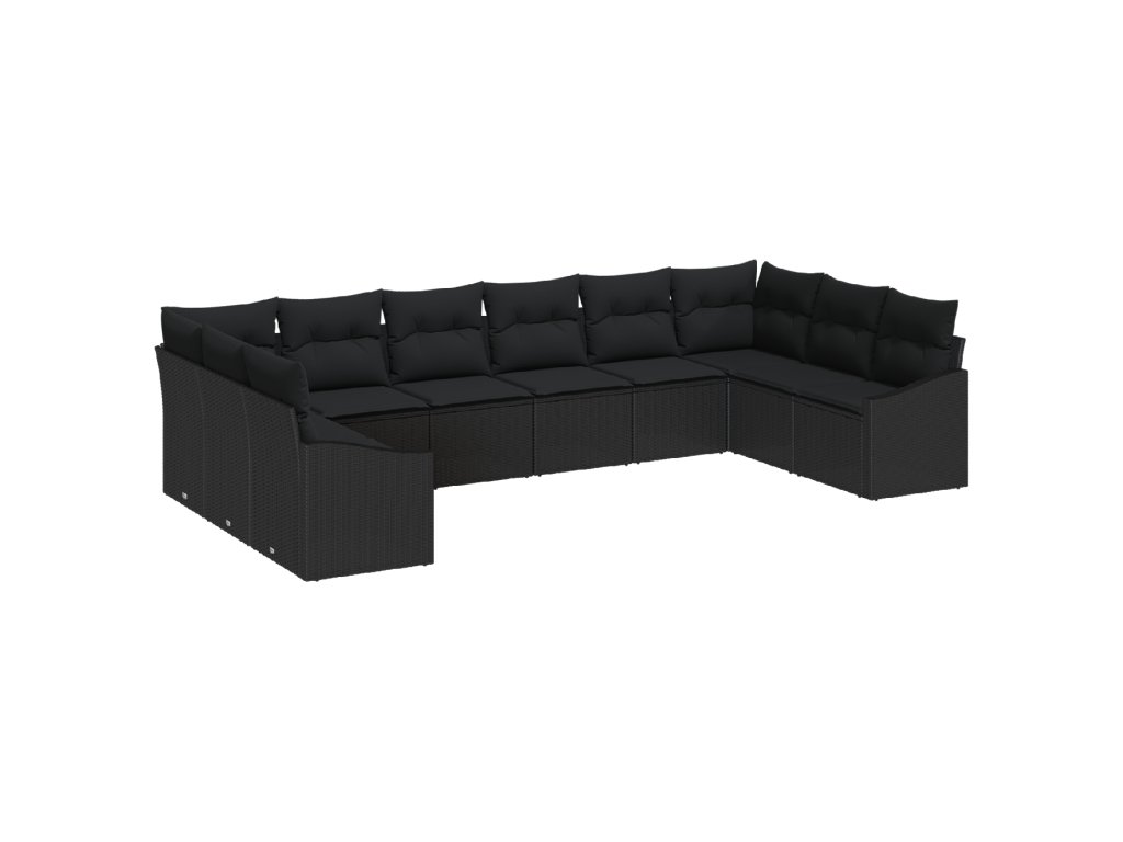 Tahle 10-dílná modulární venkovní sekční pohovka je ideální pro ty, co chtějí v zahradě spojit styl a pohodlí. S hladkým černým povrchem a pohodlnými polštáři je to perfektní místo k relaxaci nebo setkání, ideální pro terasy, zahrady nebo prostě u bazénu.