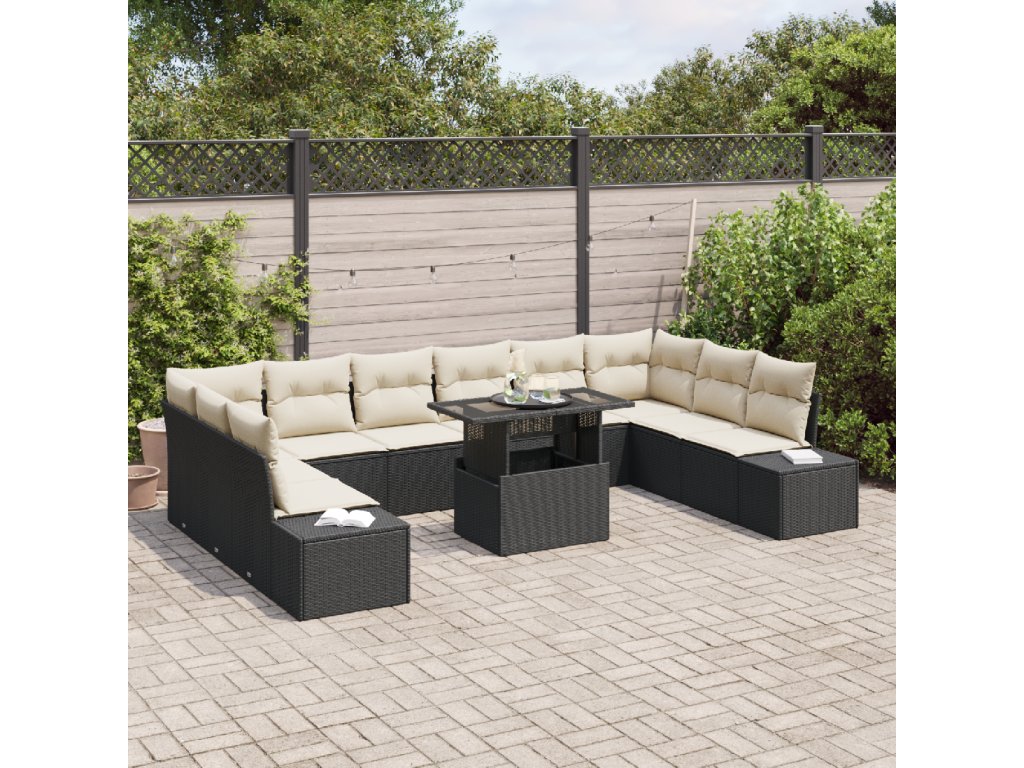 Tato 11-dílná zahradní sestava s polštáři udělá z tvého venkovního prostoru trendy místo k setkání. Kombinuje moderní ratan s měkkými polštáři pro maximální pohodlí. Je ideální pro každou příležitost, ať už plánuješ rodinnou oslavu nebo chceš vytvořit útulný koutek na svém balkoně či terase.