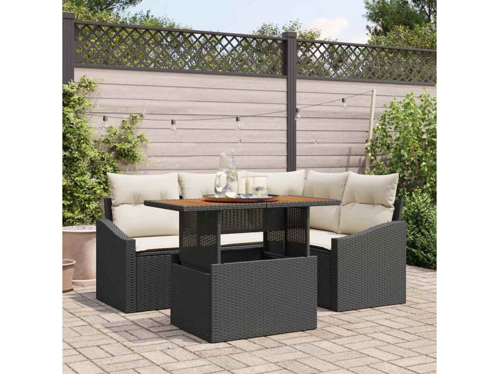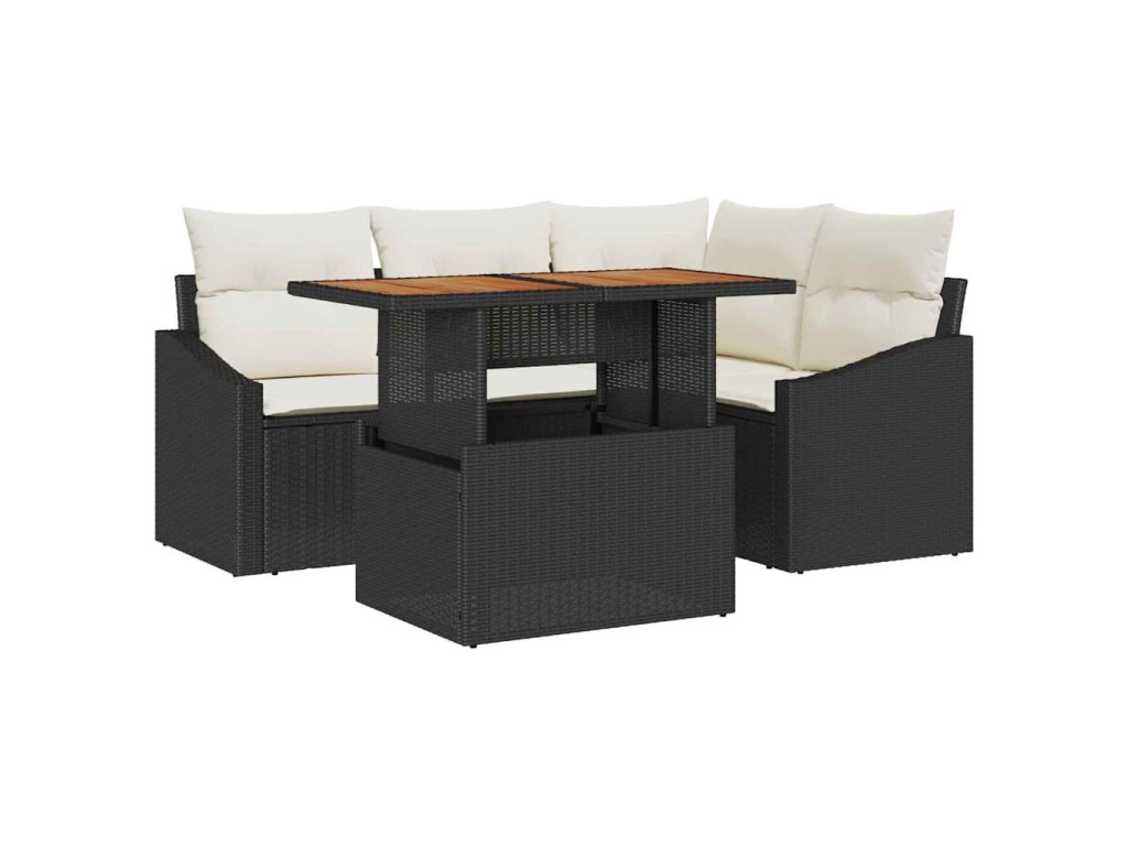 Tahle 5dílná zahradní souprava kombinuje pohodlí a praktičnost v elegantním designu, což ji dělá ideální pro oživení vašich venkovních prostor. Vyrobená z odolného poly ratanu a masivního akáciového dřeva, je to super místo pro přátele a rodinu, aby si užívali slunečné dny nebo hvězdné noci.