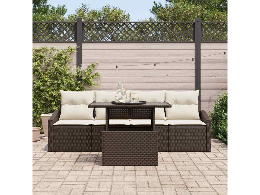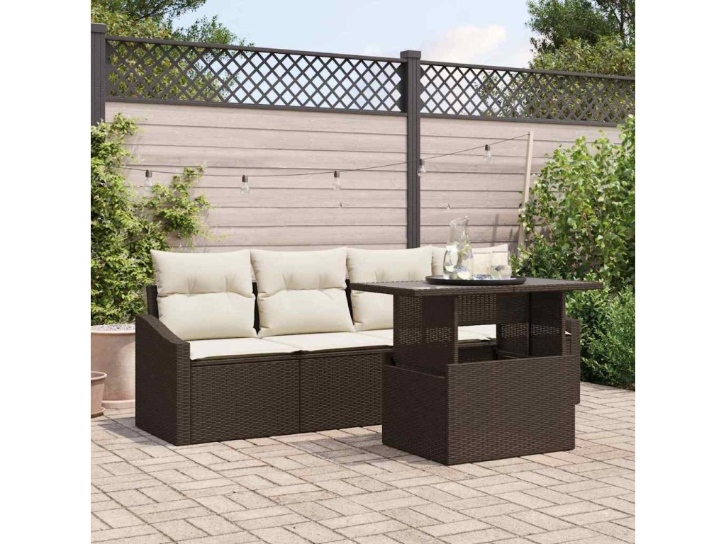 Tato zahradní pohovka spojuje styl, komfort a praktičnost, takže je skvělou volbou pro váš venkovní prostor. Hnědý poly ratan kombinovaný s měkkými krémovými polštáři vytváří útulnou atmosféru, ideální pro pohodlné relaxování a socializaci.