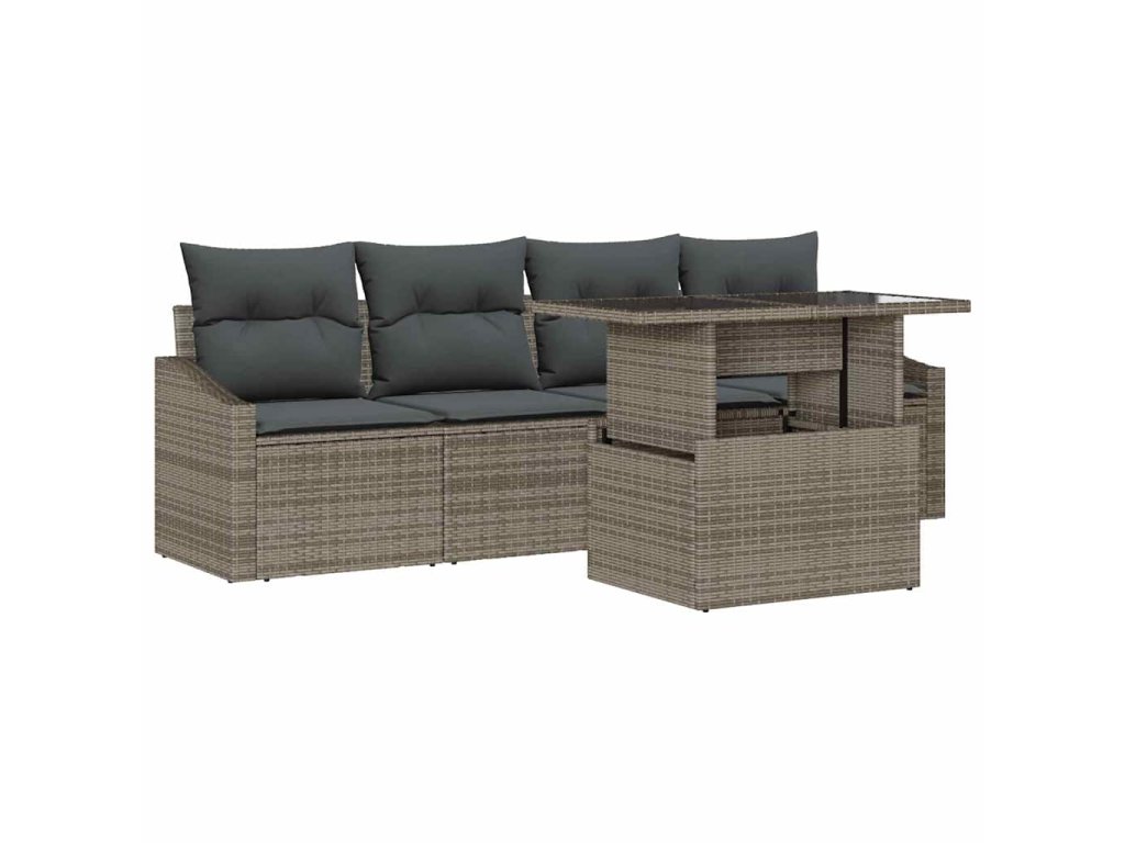 Tato stylová 5 dílná zahradní pohovka s polštáři posune venkovní odpočinek na další úroveň s jejími krásnými šedými poly ratanovými a pohodlnými krémovými polštáři. Je to přesně to, co potřebuješ pro každou zahradu nebo balkon, spojuje eleganci s praktičností, což ji dělá ideální na neformální setkání nebo útulné večeře venku, a vždy přitahuje pozornost svým moderním designem a přívětivou atmosférou.