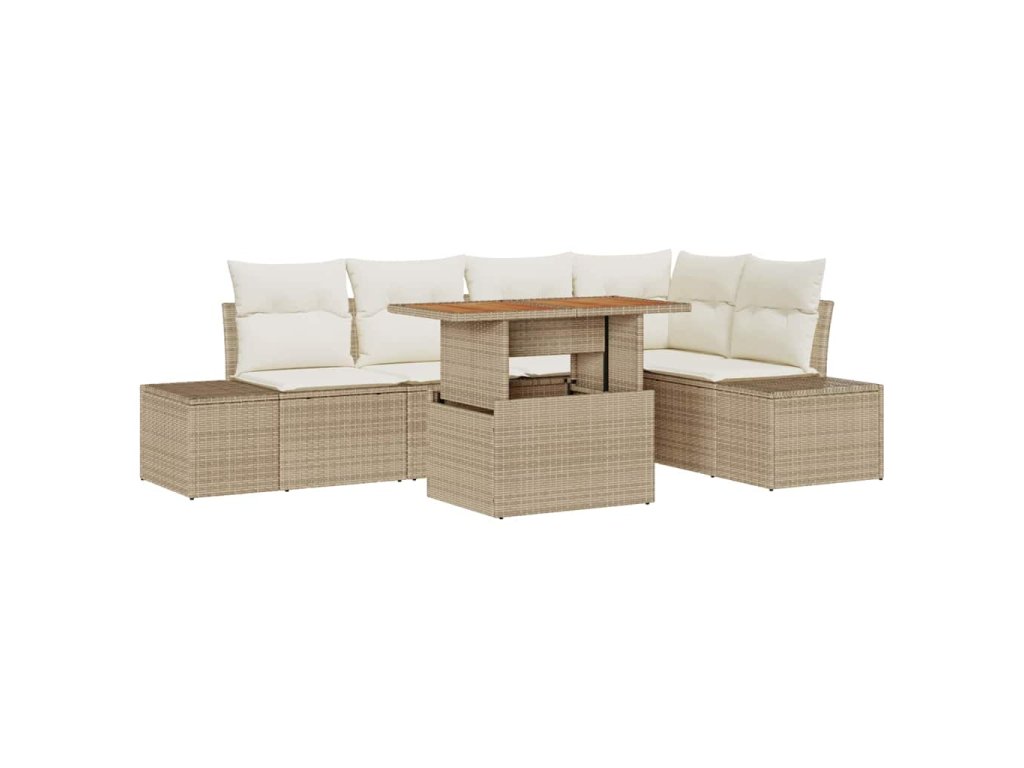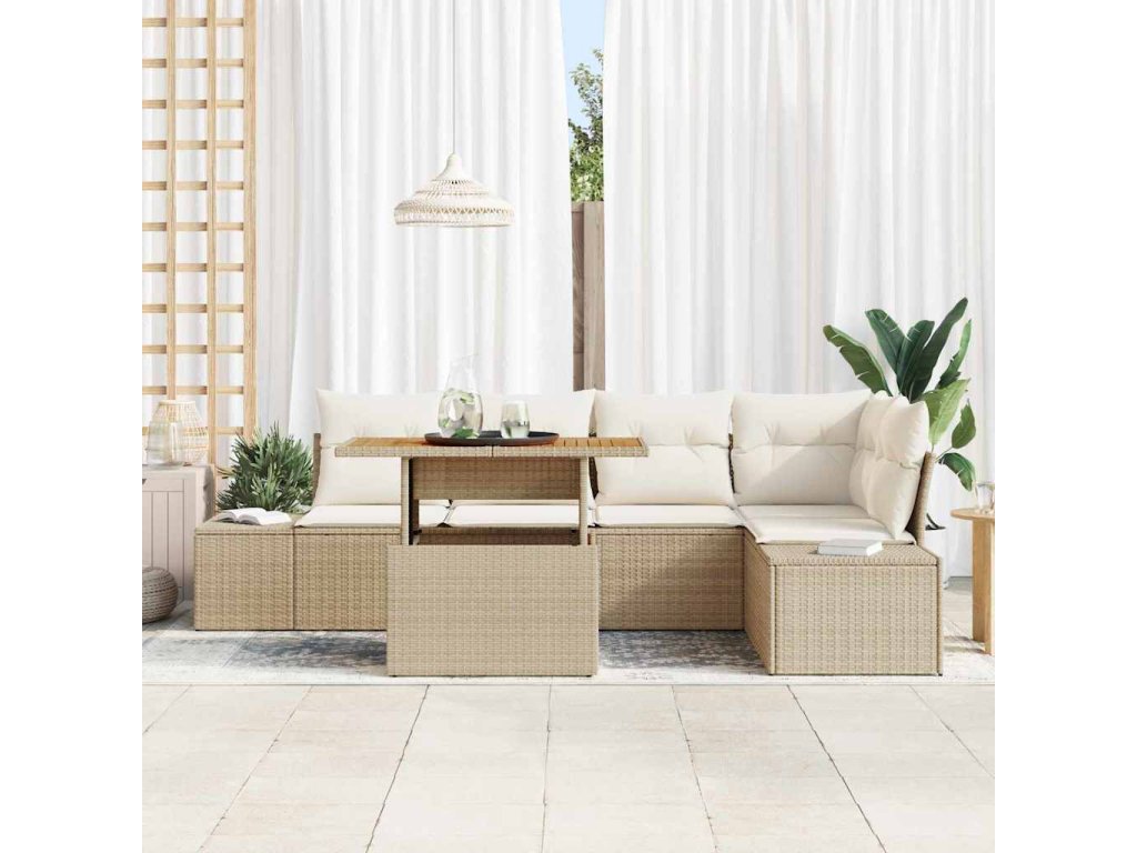 Tento 6-dílný zahradní pohovkový set je super kombinace stylu a praktičnosti, perfektní pro oživení vašich venkovních prostor, jako jsou terasy a zahrady. Moderní design se pyšní elegantním obdélníkovým stolem a měkkými béžovými polštáři, které poskytnou pohodlné sezení pro až pět lidí, a příjemně zvednou náladu vaší venkovní oblasti.