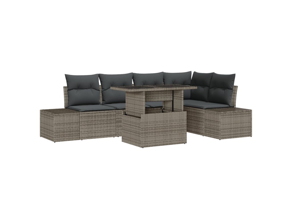 Tato šestisoučástková sada zahradní pohovky je perfektní kombinací stylu a praktického využití pro vaše venkovní prostory. Vyrobená z odolného polyratanu a pohodlných polštářů promění vaše terasy a balkony ve skvělá místa pro relaxaci a zábavu, ideální pro rodiny i setkání.