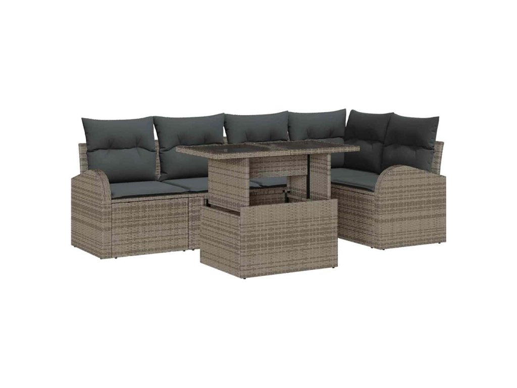 Oživte svůj venkovní prostor s 6dílnou sadou zahradního sofa vidaXL. Tato sada spojuje moderní styl s pohodlným sezením a měkkými šedými polštářky, které dělají lenošení příjemným.