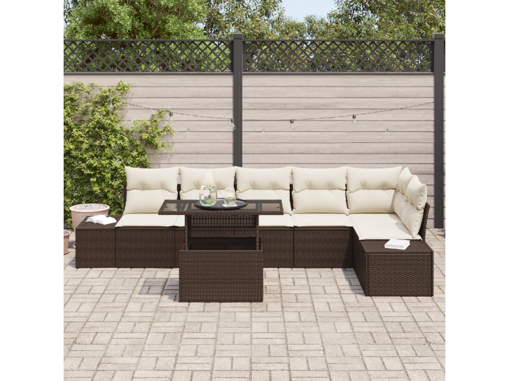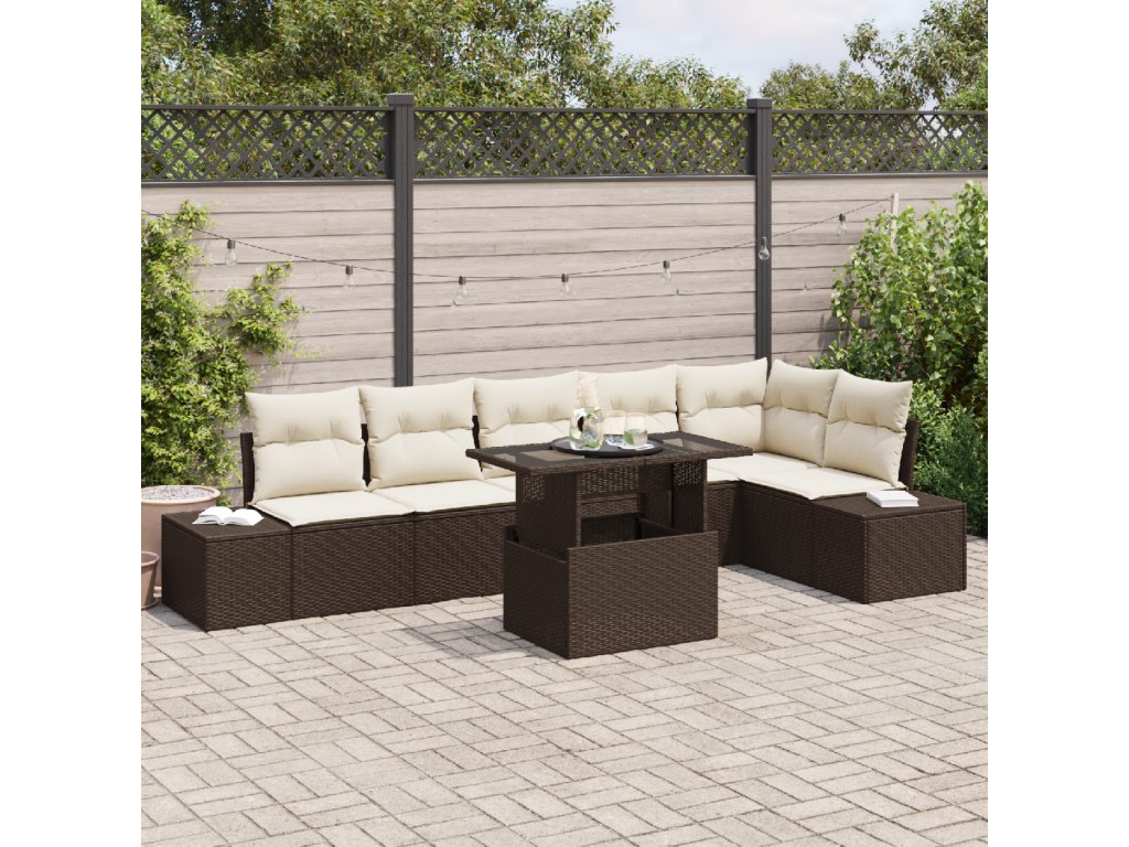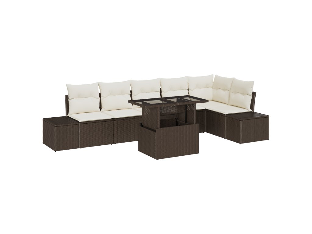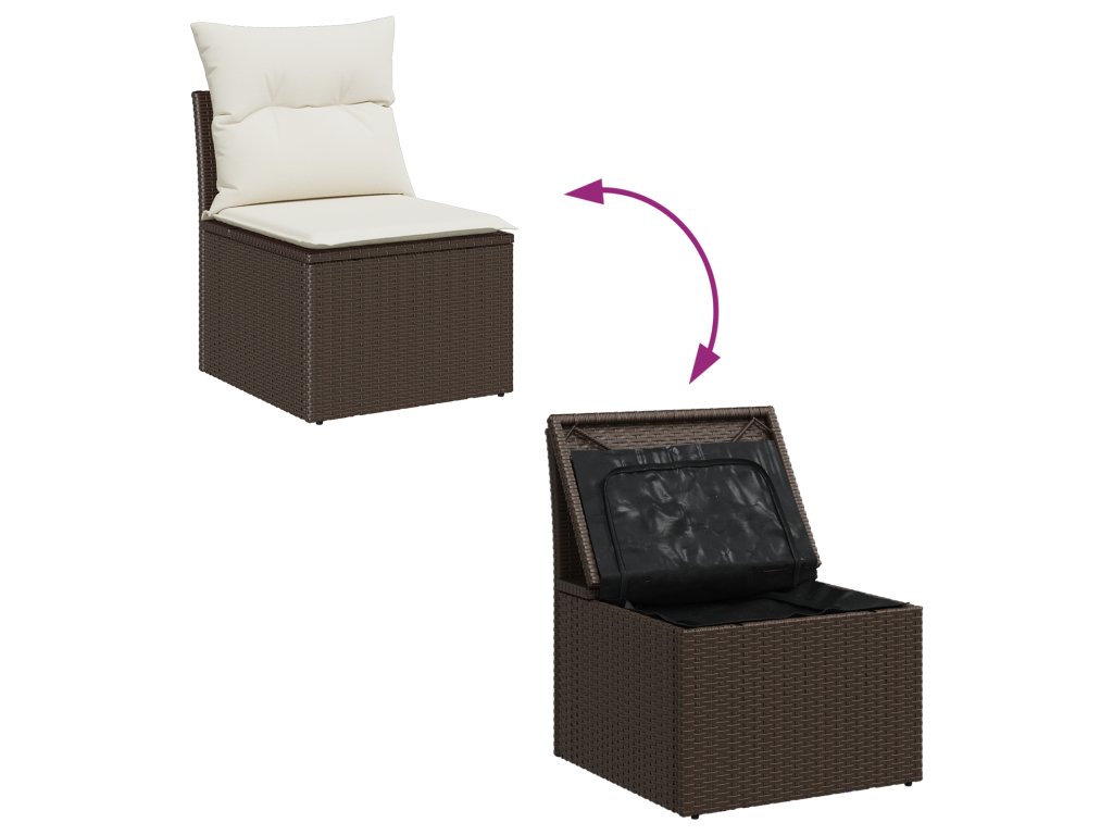 - Doručení obsahuje: 2 x boční pohovka s úložným prostorem a voděodolným pytlem, 1 x rohové sedadlo s úložným prostorem a voděodolným pytlem, 3 x centrální sedadlo s úložným prostorem a voděodolným pytlem, 1 x zahradní stůl