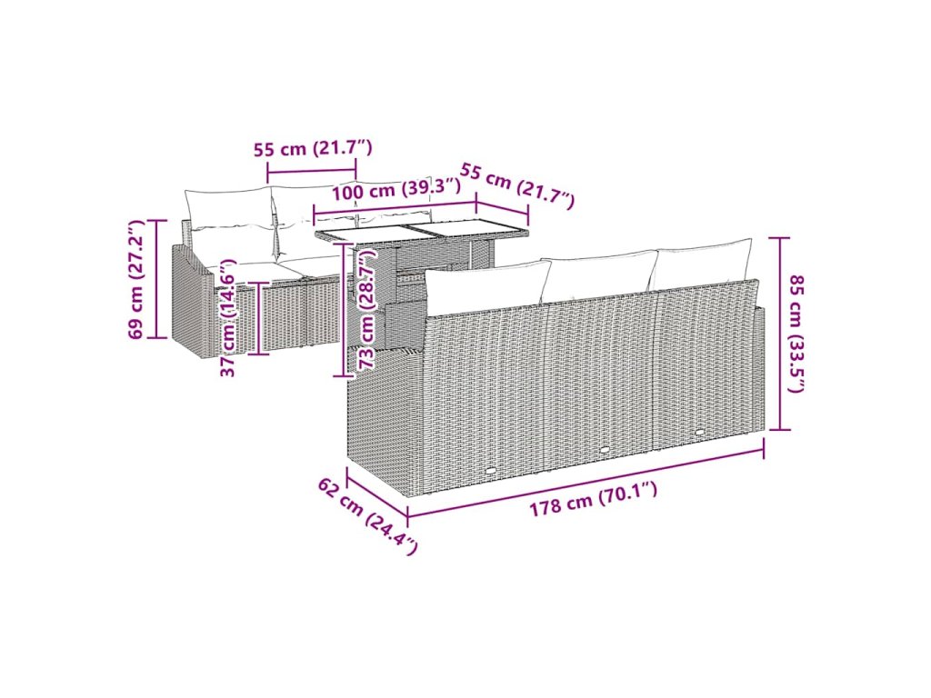 - Zahrnuté komponenty: Získáš 2 středové sedáky, 4 sofa s opěradly a stůl, vše navržené pro perfektní pohodlí a místo při setkání. Temperované skleněné desky jsou stabilní a vypadají elegantně. Polštáře jsou plněné pěnou a mají odnímatelné polyesterové potahy, které se dají jednoduše sundat a vyprat. Každý kousek je zaměřený na pohodlí a styl.