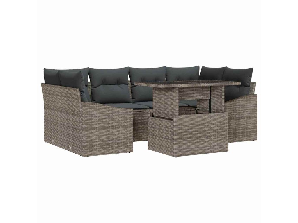 - Součásti: Tato zahradní sofa sada zahrnuje různé komponenty, které ti umožní ji uspořádat jak chceš. Najdeš v ní dvě rohové sedačky, dvě střední sedačky, dvě pohovky s opěrkami a centrální stůl se skleněnou deskou, ideální na nápoje nebo dekorace.