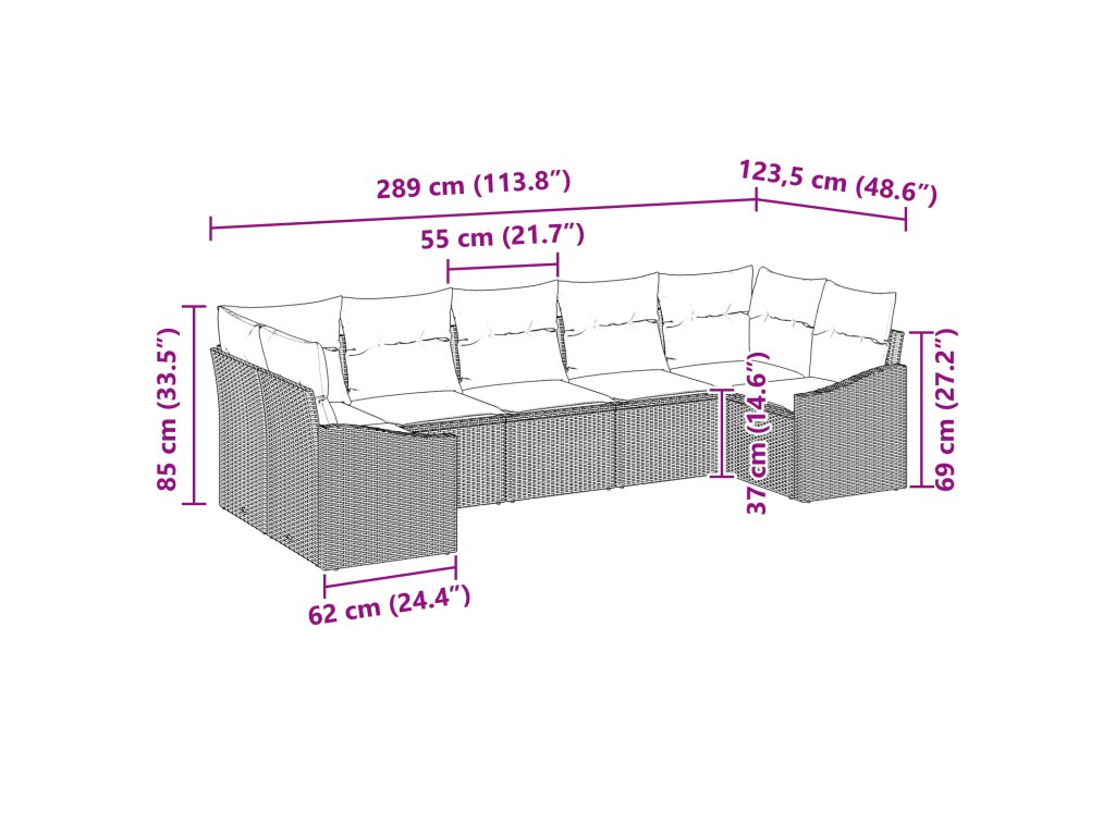 - Dodávka obsahuje: 2 x rohové sedadlo, 3 x střední sedadlo, 2 x pohovka s opěradlem