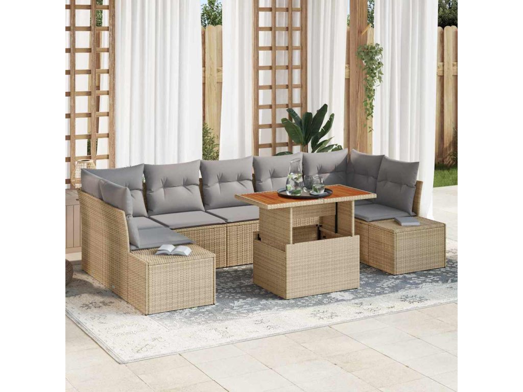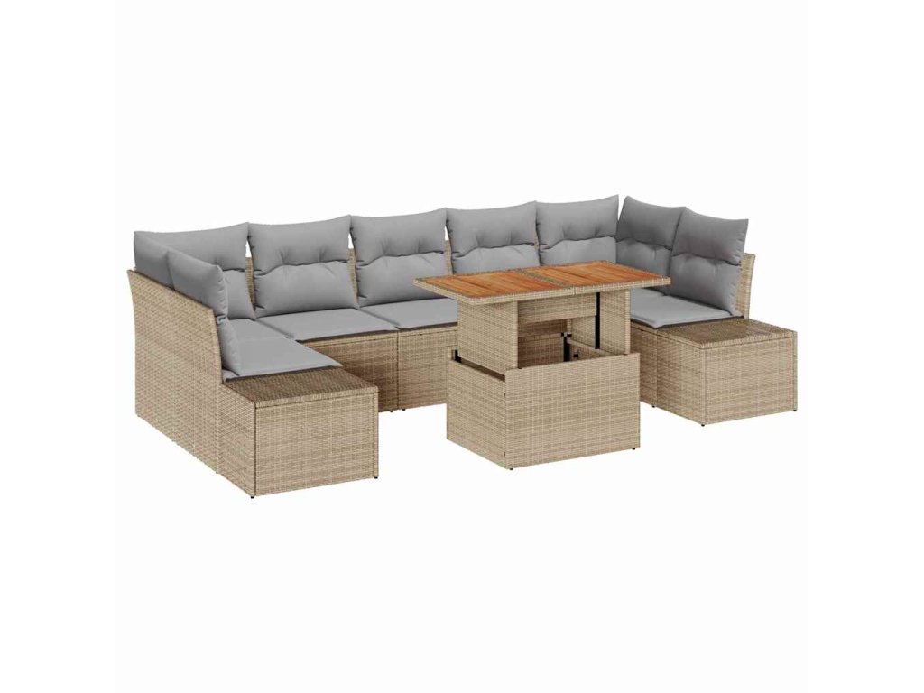 - Stylový vzhled: Elegantní, moderní design této pohovkové sady se hodí k jakékoli venkovní dekoraci a zvýší kouzlo vaší zahrady nebo balkonu. Kombinace béžového ratanu a šedých polštářů jí dodává šmrnc.