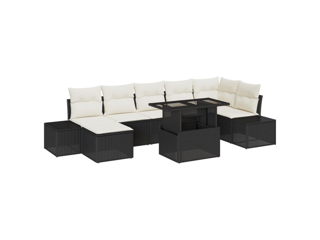 Tenhle úžasný 8-dílný zahradní sofa set kombinue moderní design s skvělou funkčností, což nabízí super řešení pro venkovní relaxaci. S elegantním černým povrchem z polyratanu a smetanovými béžovými polštáři to nejen skvěle vypadá na tvém patio nebo balkonu, ale také tě udržuje v pohodlí během setkání s rodinou a přáteli.