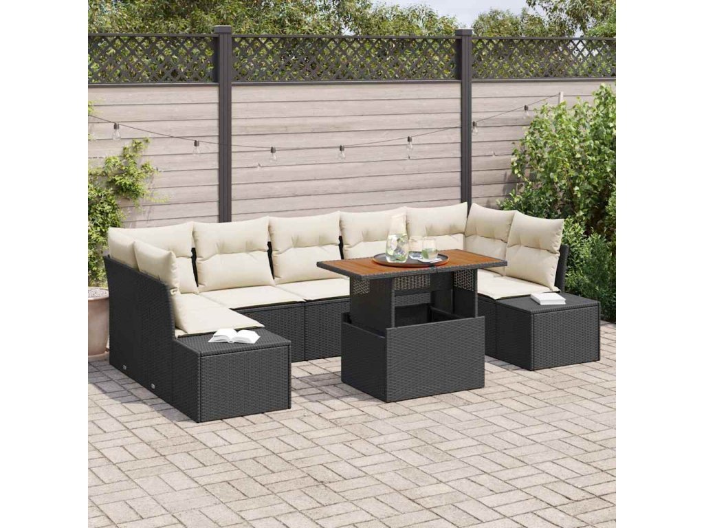 - Elegantní styl: Moderní vzhled s elegantním černým poly ratanem a měkkými béžovými polštáři dodává do tvého venkovního prostoru trošku třídy.
