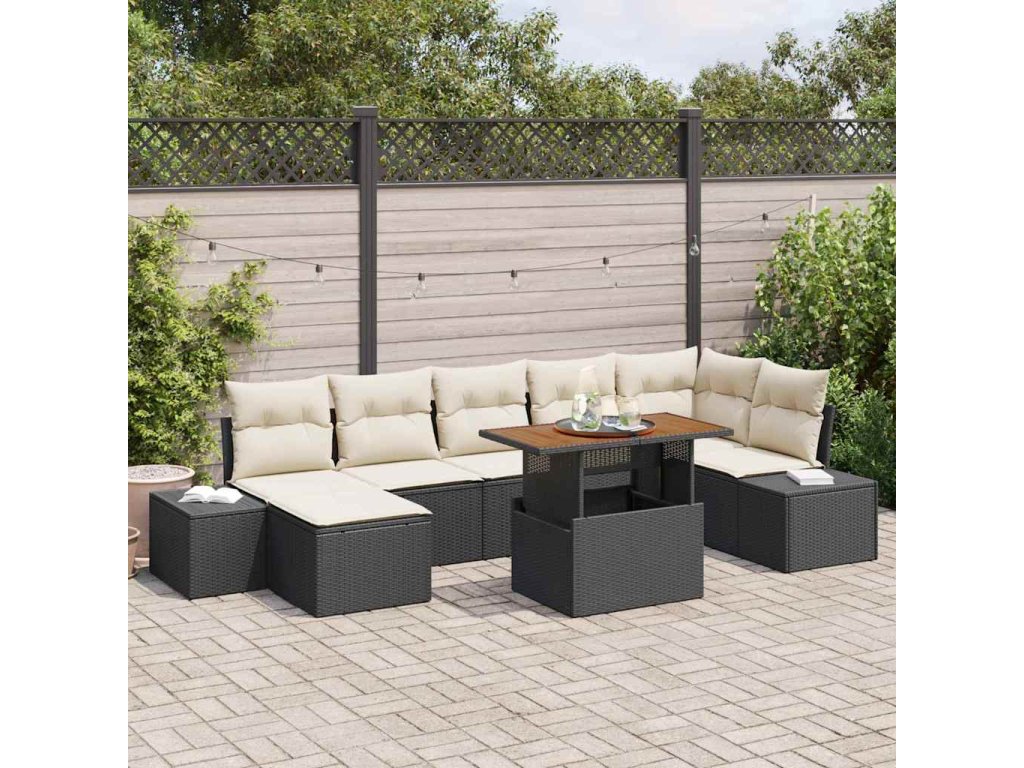 - Obsah balení: Souprava obsahuje vše, co potřebuješ na sezení: 2 boční sedačky, 1 rohový prvek, 3 středové sedačky, ottoman a zahradní stolek. Každý prvek má úložný prostor, takže je to praktické a uspořádané. Voděodolné úložné tašky udržují tvé věci v suchu a vypadají skvěle.