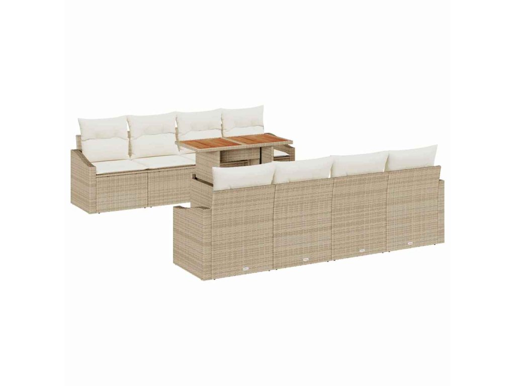 - 4 x křeslo sofa včetně úložné funkce s voděodolnou taškou, 4 x středová sedačka včetně úložné funkce s voděodolnou taškou, 1 x zahradní stůl