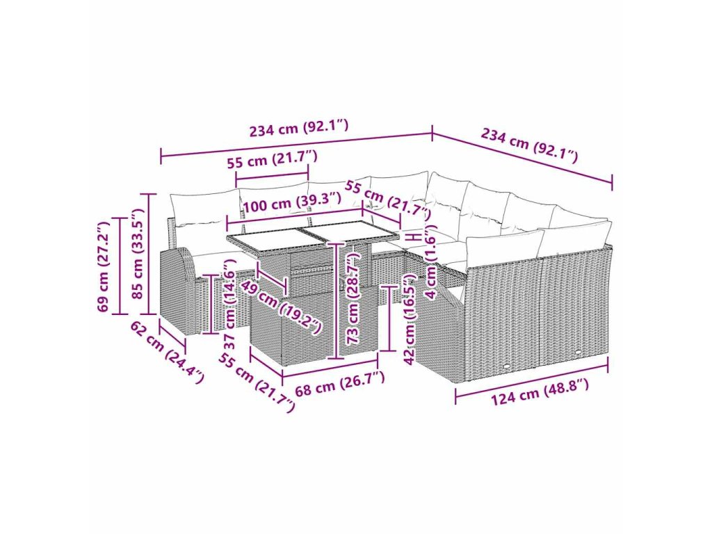 - Doručení obsahuje: 2 x rohové sedadlo, 4 x středové sedadlo, 2 x arm sofa, 1 x stůl