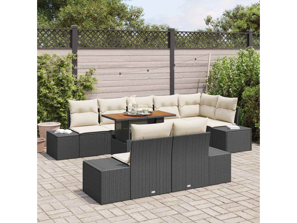 Hlavní rysy tohoto zahradního sedacího setu zahrnují odolné materiály vůči povětrnostním vlivům, což mu umožňuje zvládat různé venkovní podmínky. Každé sedadlo má úložný prostor, aby všechno zůstalo hezky uspořádané. Pohodlné polštáře tvoří příjemné místo k odpočinku, ideální pro užívání dlouhých slunných odpolední nebo večerních setkání. Jeho modulární design poskytuje flexibilitu přizpůsobení pro váš prostor a organizaci různých venkovních událostí. A navíc, díky své krásné tkané textuře tento set zvyšuje vizuální přitažlivost kterékoli terasy, což z něj dělá příjemné ústřední místo pro venkovní setkání.- Počet položek: 9