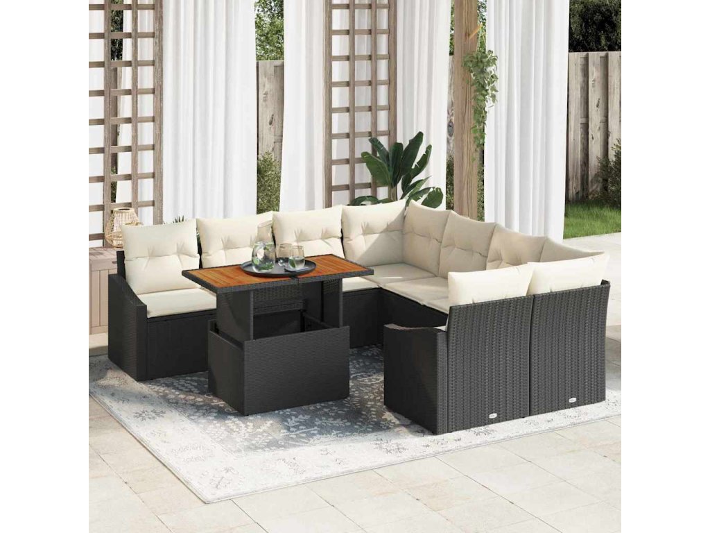 - Stylový design: S texturovaným povrchem a moderními prvky zvedá tento sofaset úroveň vaší venkovní plochy. Kombinace výrazného černého ratanu s jemnými krémovými polštáři ladí se všemi stylem a propojuje sofistikovanost s pohodlím.