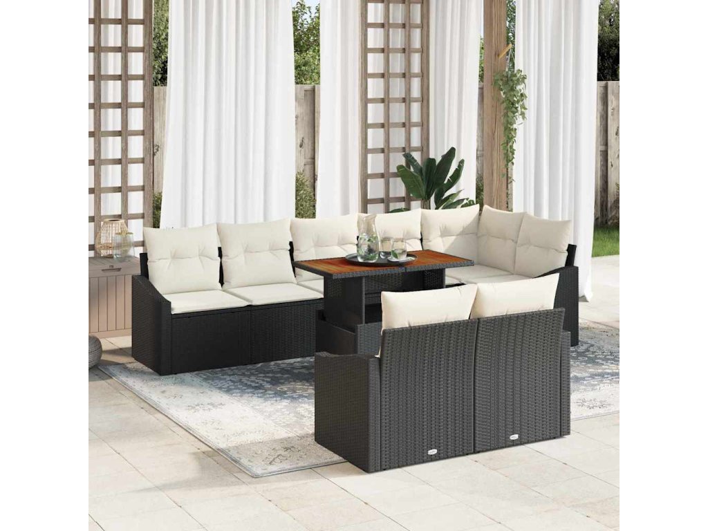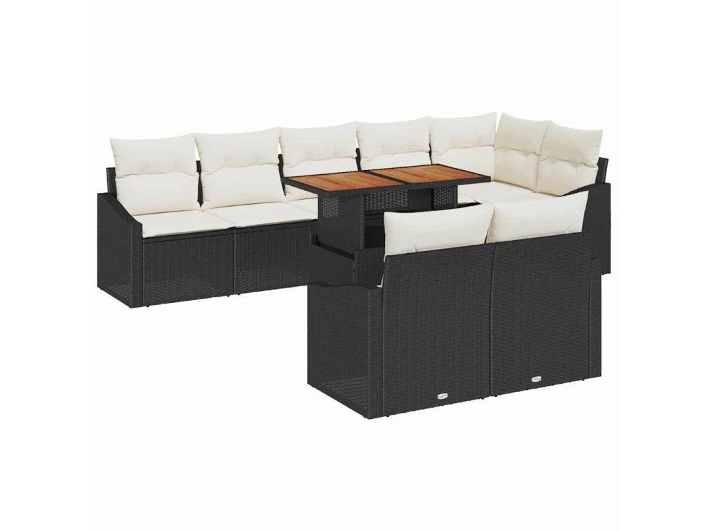 Mrkni na tento 9dílný zahradní pohovkový set – je to styl a praktičnost v jednom. Skvělý pro venkovní setkání, líné odpoledne nebo uvolněné večery. Díky modernímu černému designu z ratanu a pohodlným béžovým polštářům má ten správný vibe, který udělá z každé zahrady nebo balkonu super místo.