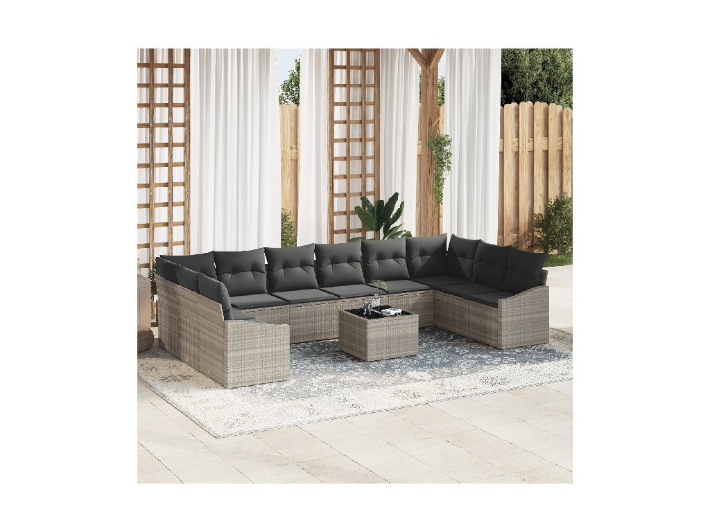 Tato 11-dílná zahradní jídelní sada s polštáři je ideální mix stylu a užitnosti, navržená pro zkrášlení vaší venkovní plochy. S prostorným designem a moderním vzhledem je super na večírky s přáteli, rodinná jídla, nebo jen tak odpočívání v zahradě nebo na balkoně.