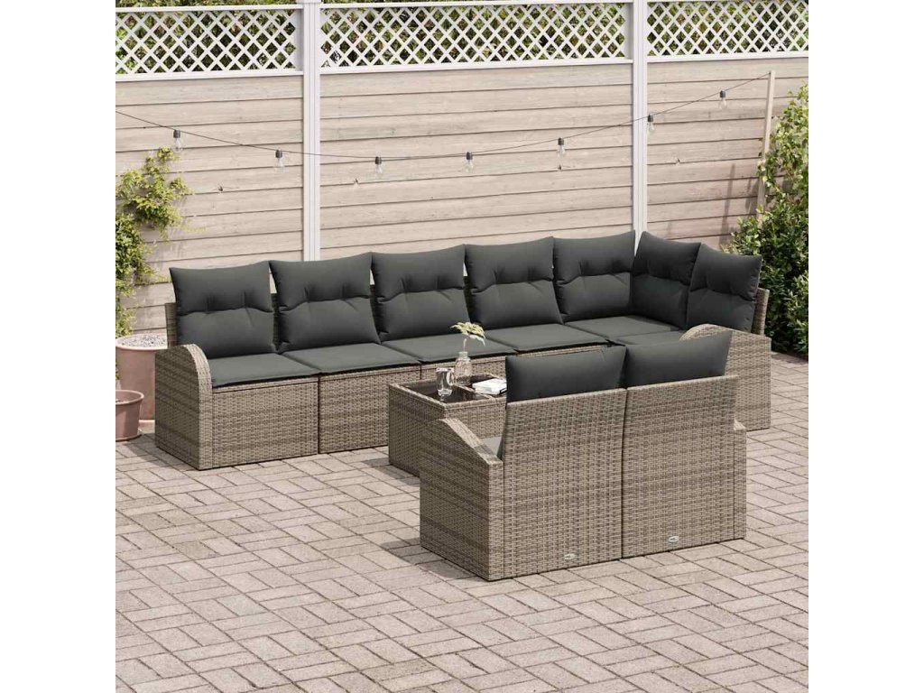 Tato úžasná venkovní sekční pohovka změní tvůj balkon nebo patio na skvělou zónu na lenošení. Je pohodlná a ideální pro odpočinek nebo na pořádání skvělých chvil venku. Díky elegantnímu vzhledu šedého polyratanu a stylovým polštářům nejen náhodně tvoří pohodlné sezení, ale také oživuje každý venkovní prostor, což ji dělá perfektní pro rodinu a přátele.