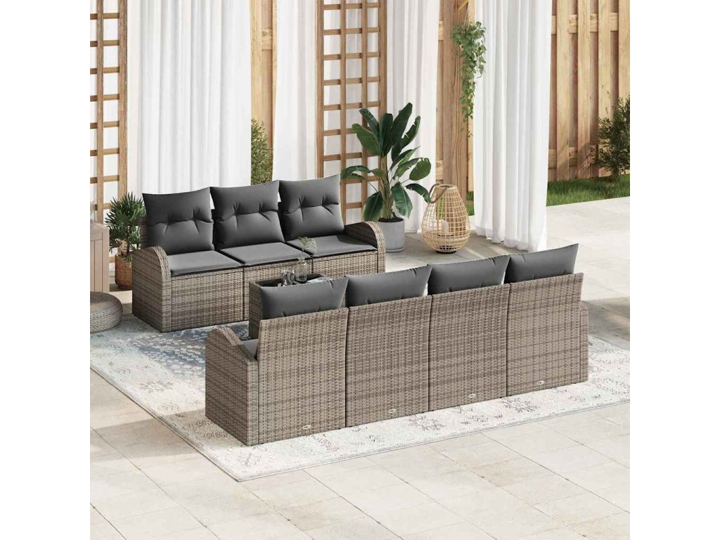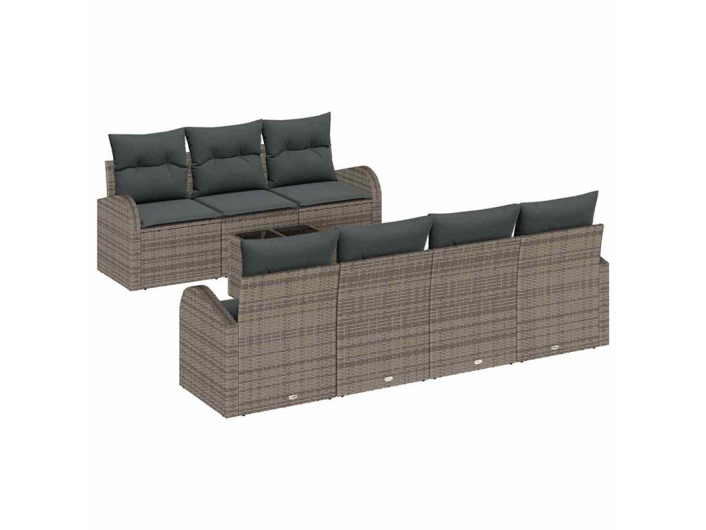 - Materiály: Vyrobeno z poly ratanu, tento pohovkový set spojuje odolnost s čerstvým vzhledem, což je ideální pro venkovní použití. Tvrzený skleněný stůl dodává sofistikovaný dotek a snadno se udržuje – ideální pro venkovní lenošení.