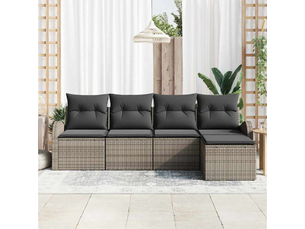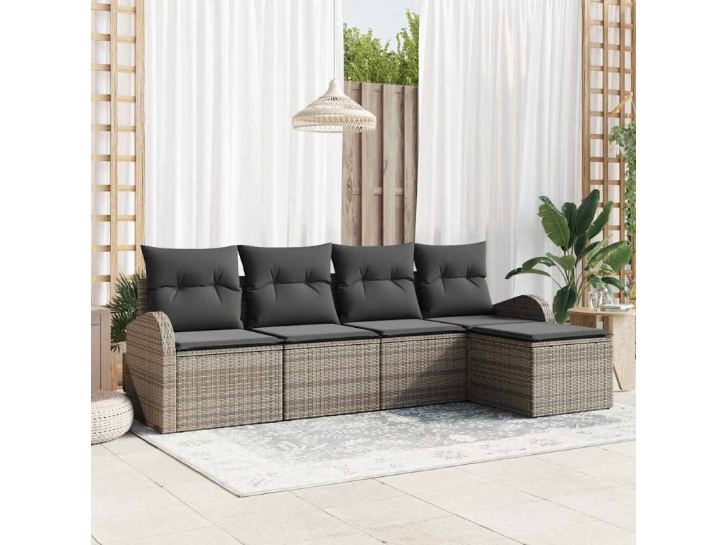 • Modulární design: Snadno se míchat a kombinovat pro jakýkoli venkovní prostor. Přeuspořádání je rychlé a snadné. • Voděodolné polštáře: Vyrobené z polyesteru s voděodolnou úpravou, takže se nemusíte bát deště a skvrn. • Stylový vzhled: Elegantní šedá barva dodá vašemu venkovnímu prostoru moderní šmrnc. • Maximální komfort: Užívejte si pohodlí s polštáři, ideální pro romantické večery pod hvězdami nebo prosluněné odpoledne. • Široké uspořádání: Tato souprava pohodlně obsáhne až pět lidí, ideální pro pořádání skvělých chvilek.- Počet položek: 5