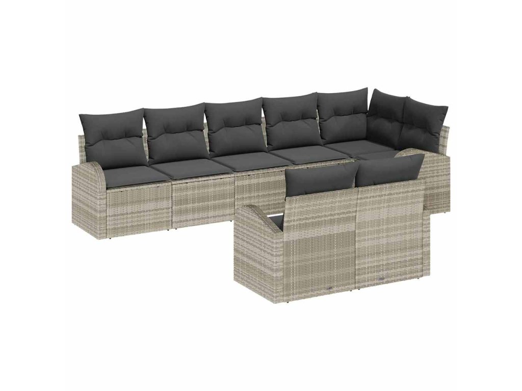 Tahle venkovní sectionální pohovka je navržená tak, aby vaši terasu nebo balkon proměnila v pohodlné místo na lenošení. Poskytuje komfort a uvolnění pro setkání nebo odpočinek venku. S moderním světlým šedým povrchem z poly ratanu a elegantními černými polštáři to není jen praktické, ale i stylové, ideální pro hostování přátel a rodiny.