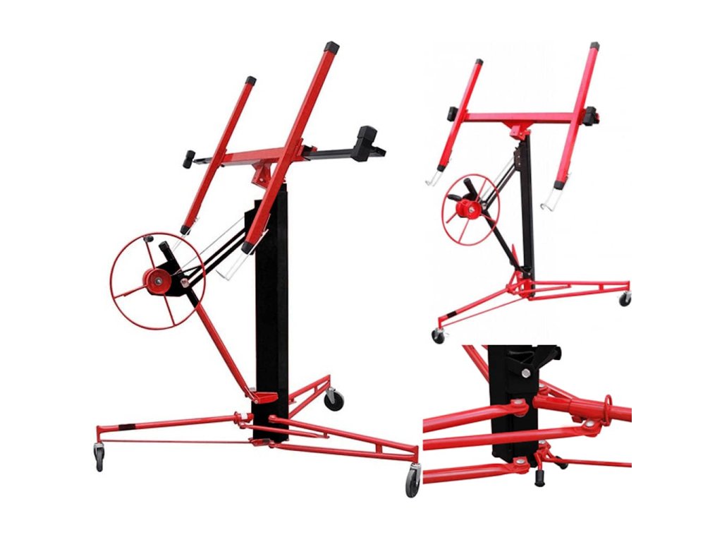 Sádrokartonářský zvedák je nepostradatelným nástrojem pro upevnění desek z různých materiálů. Tento nástroj usnadňuje a zvyšuje bezpečnost montáže plechů na vysokých stěnách nebo stropech. Zvedák je také vybavený kolečky, takže jej lze snadno přesouvat.