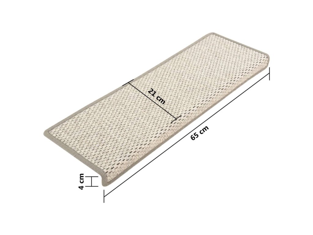 Nášlapy jsou vyrobeny ze silné textilie se sisalovým vzhledem, takže tlumí zvuk a brání uklouznutí a přitom jsou zároveň teplé a pohodlné. Dají se také vyprat. Nášlapy mají záhyb, díky kterému chrání schody jak seshora, tak i z jejich přední strany. Lepící pásky na zadní straně nášlapů vám umožní nášlapy na schody připevnit rychle a jednoduše.