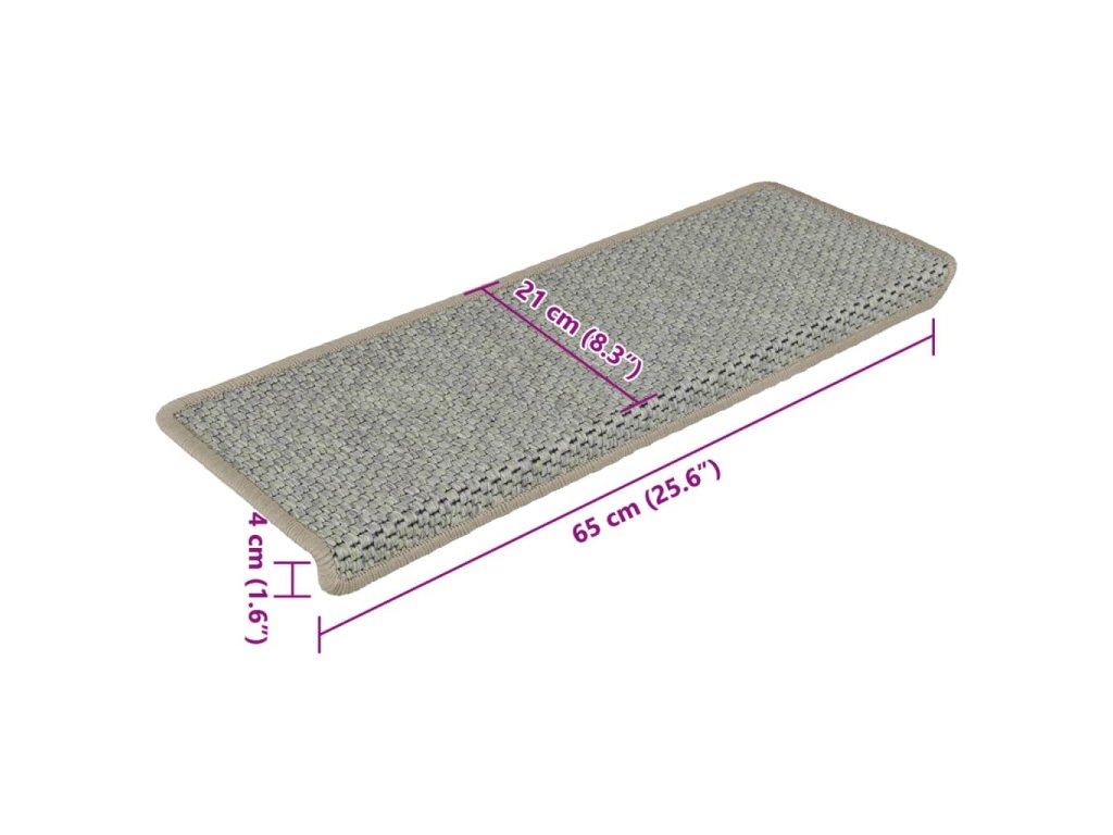 Nášlapy jsou vyrobeny ze silné textilie se sisalovým vzhledem, takže tlumí zvuk a brání uklouznutí a přitom jsou zároveň teplé a pohodlné. Dají se také vyprat. Nášlapy mají záhyb, díky kterému chrání schody jak seshora, tak i z jejich přední strany. Lepící pásky na zadní straně nášlapů vám umožní nášlapy na schody připevnit rychle a jednoduše.