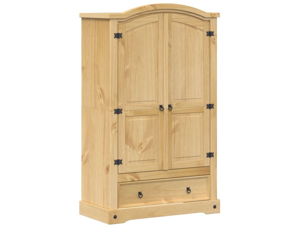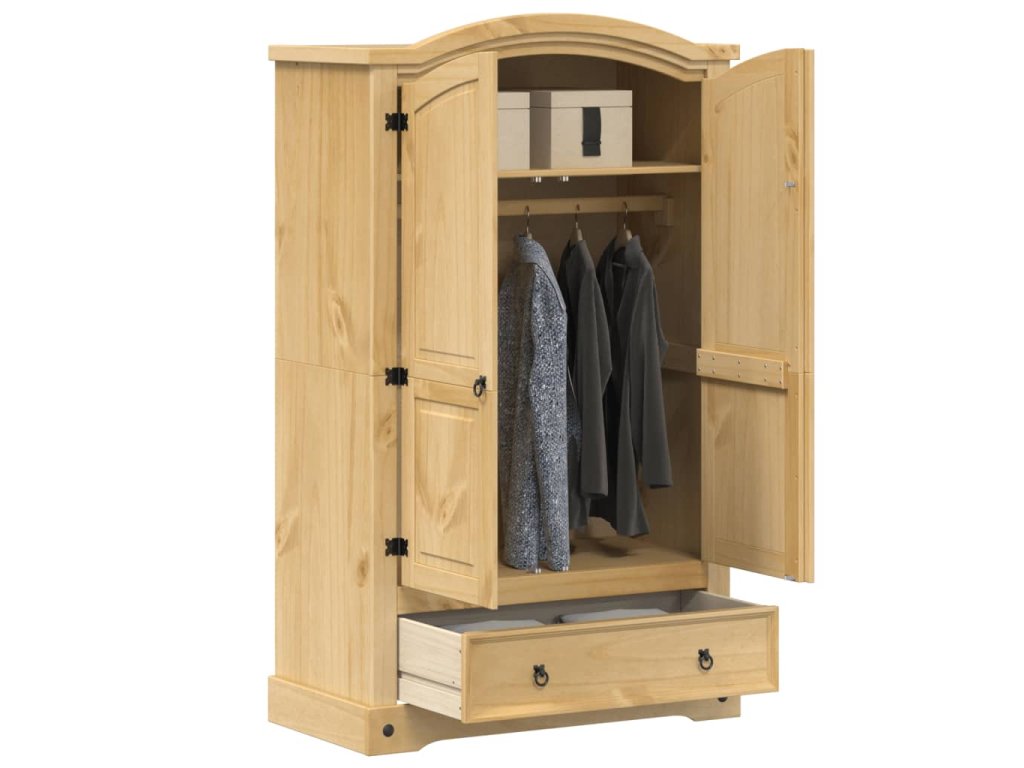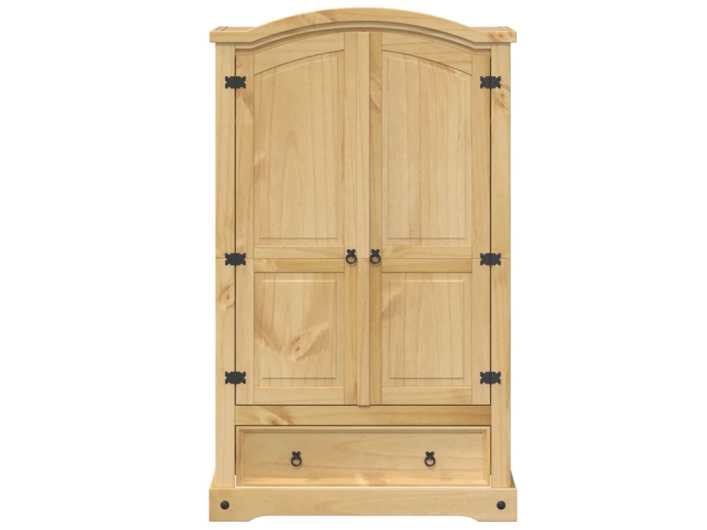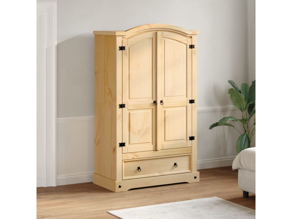 Tato klasická dřevěná šatní skříň nabízí dostatek úložného prostoru, abyste měli oblečení, boty a doplňky úhledně uspořádané.