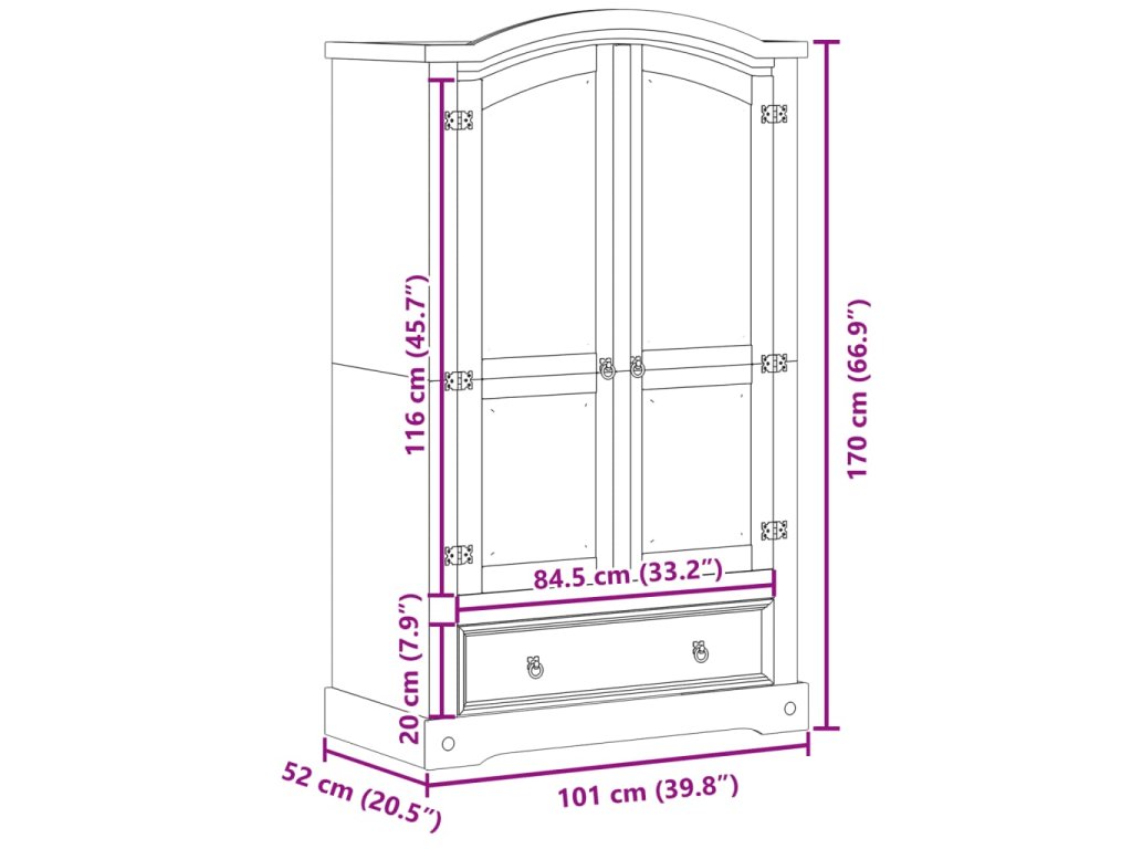 - Rozměry: 101 x 52 x 170 cm (Š x H x V)
