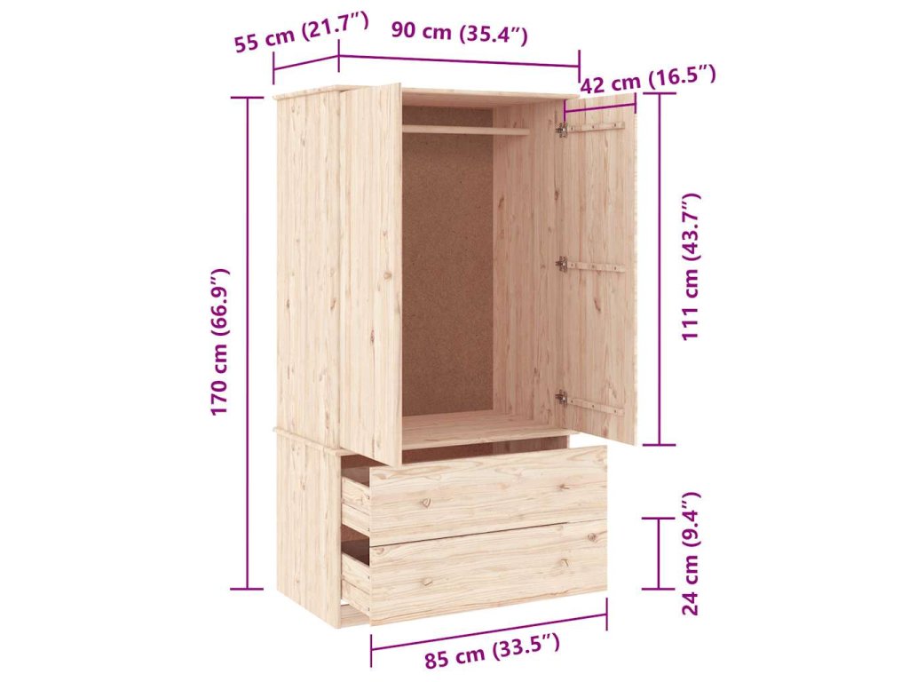 - Bez povrchové úpravy: Jelikož je šatní skříň vyrobena z masivního borového dřeva bez povrchové úpravy, můžete zachovat její přirozenou barvu, ale také ji podle libosti natřít nebo nalakovat.