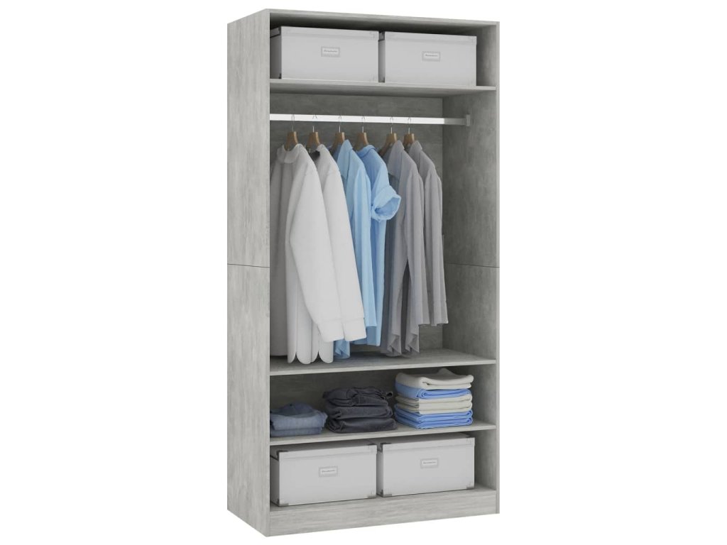 Šatník je vyrobený z desky, která zajišťuje jeho pevnost, odolnost a dlouhou životnost. Uvnitř se nachází 3 malé přihrádky a 1 velká přihrádka s šatní tyčí. Bohatý prostor tak můžete využít jak k zavěšení delších oděvů, tak k uložení poskládaného oblečení, jako jsou svetry či džíny, a menších doplňků, například klobouků, kabelek atd.