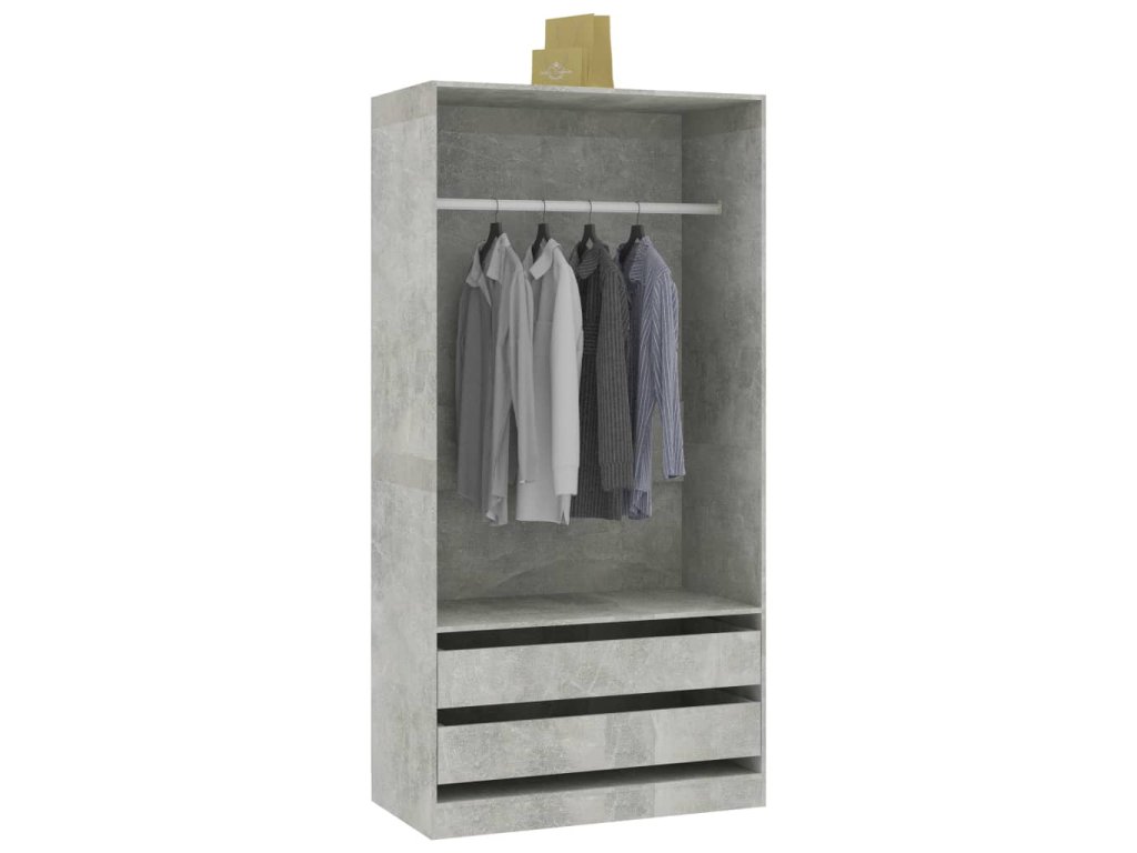 Šatník je vyrobený z desky, která je zárukou pevnosti, odolnosti a dlouhé životnosti. Uvnitř se nachází 2 zásuvky a 1 velká přihrádka s šatní tyčí. Najdete zde tudíž úložný prostor jak pro zavěšení delších oděvů, tak k uložení poskládaného oblečení, jako jsou svetry či džíny, a menších doplňků, například klobouků, kabelek atd.