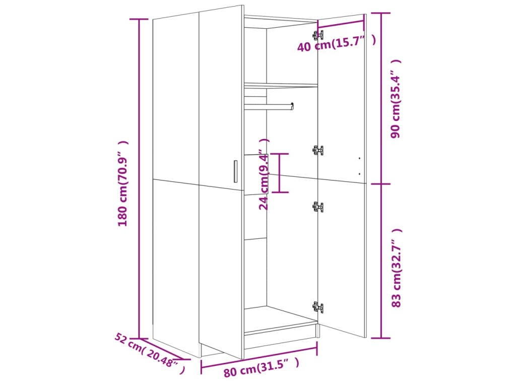 - Rozměry: 80 x 52 x 180 cm (Š x H x V)