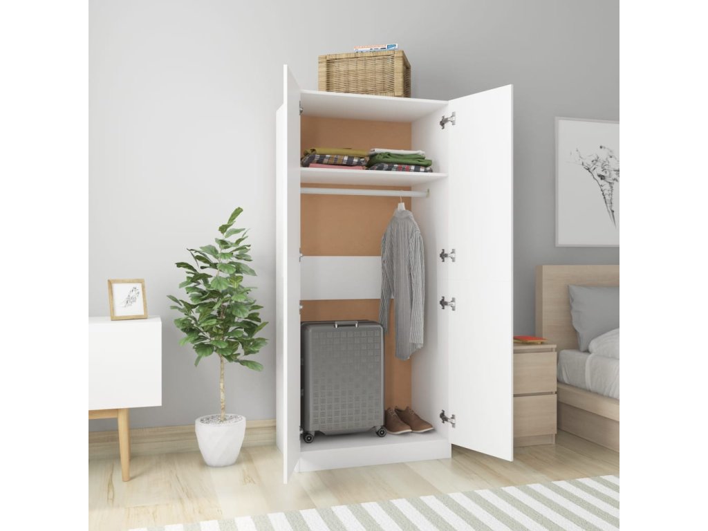 Šatník je vyrobený z prémiových desek, které jsou zárukou pevnosti, odolnosti a dlouhé životnosti. Uvnitř se nachází velká přihrádka s šatní tyčí. Najdete zde tudíž spoustu prostoru jak pro zavěšení delších oděvů, tak k uložení poskládaného oblečení, jako jsou svetry či džíny, a menších doplňků, například klobouků, kabelek atd.