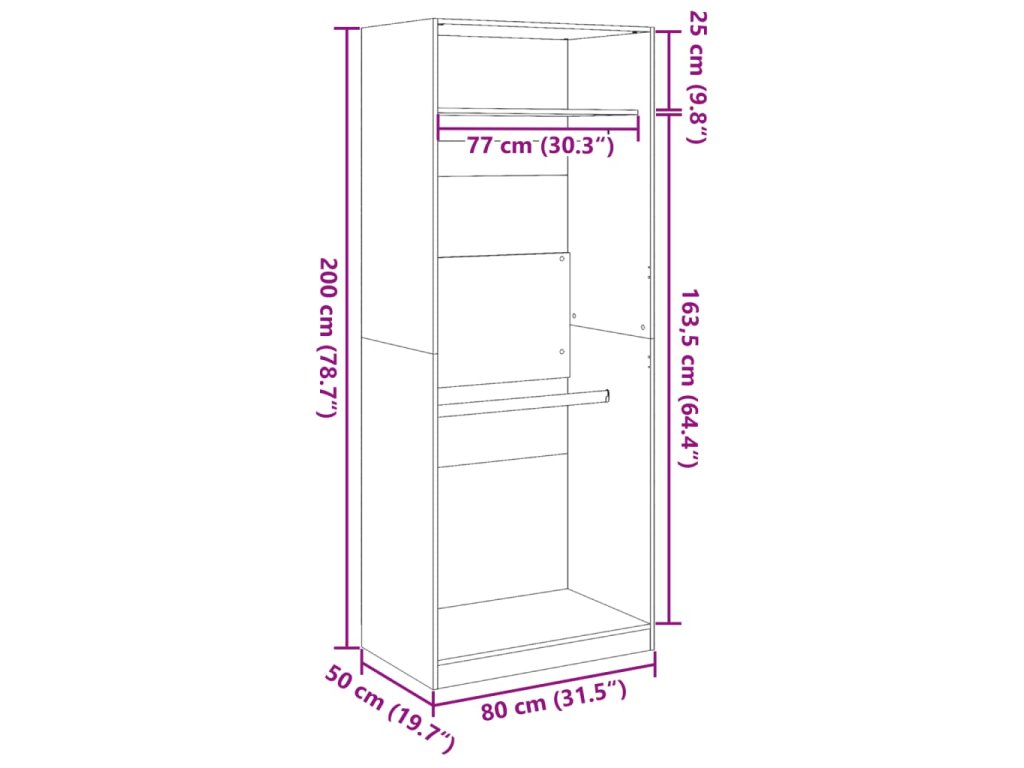 - Rozměry: 80 x 50 x 200 cm (Š x H x V)