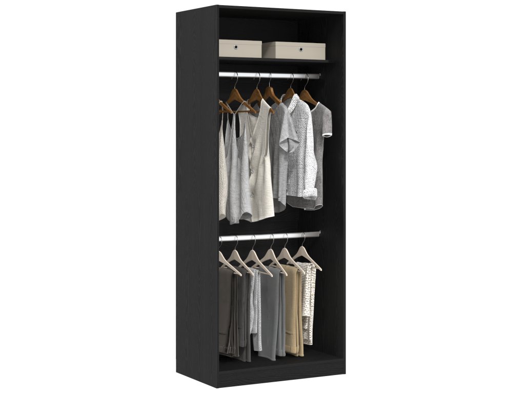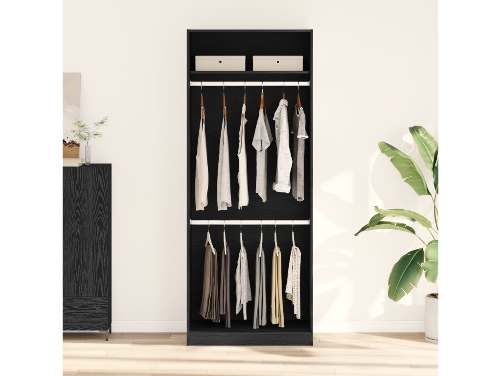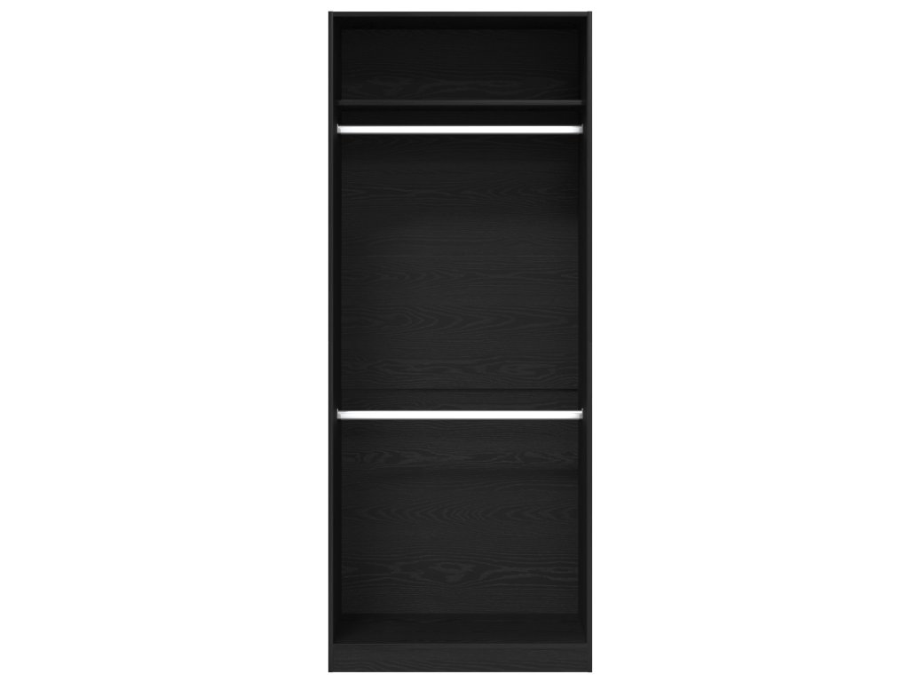 Tahle moderní skříň z černého dubu je stylovým úložným řešením, co spojuje funkčnost s moderním designem. Perfektní do ložnic, má skvělou matnou černou povrchovou úpravu a vestavěné police, které pomáhají udržet věci v pořádku. Její rozměry 80 x 50 cm nabízejí dost prostoru pro oblečení a doplňky, zatímco hladký povrch přidává elegantní vzhled.