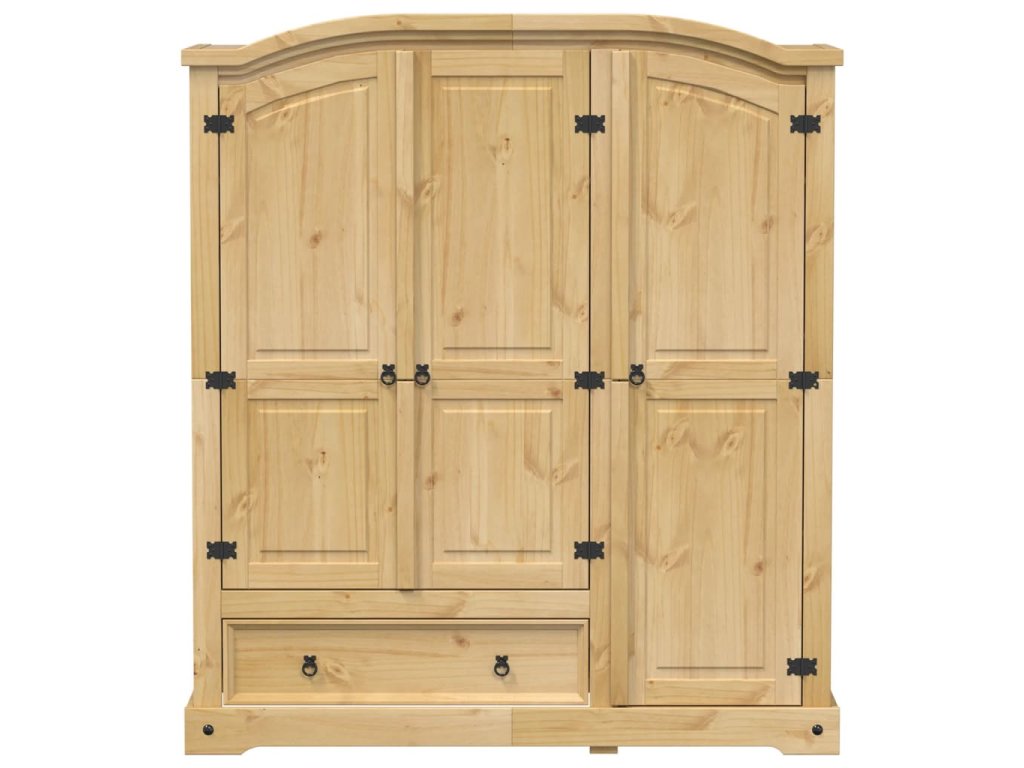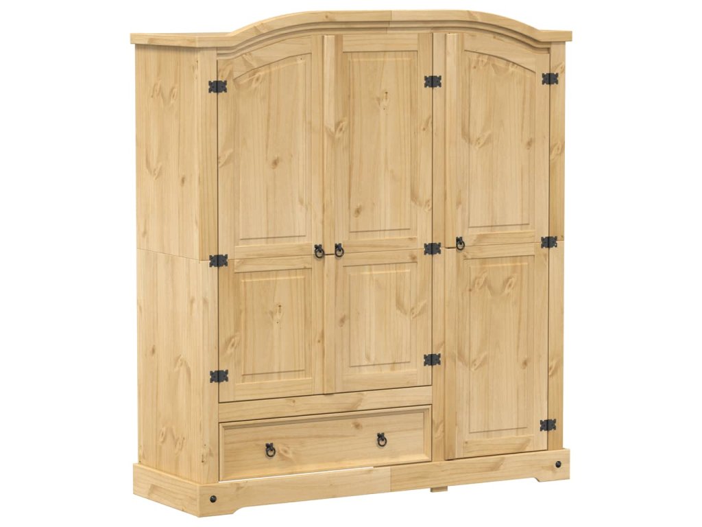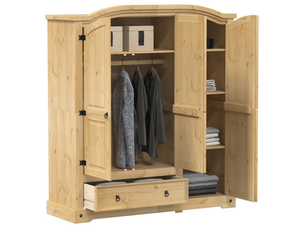 Tato klasická dřevěná šatní skříň nabízí dostatek úložného prostoru, abyste měli oblečení, boty a doplňky úhledně uspořádané.