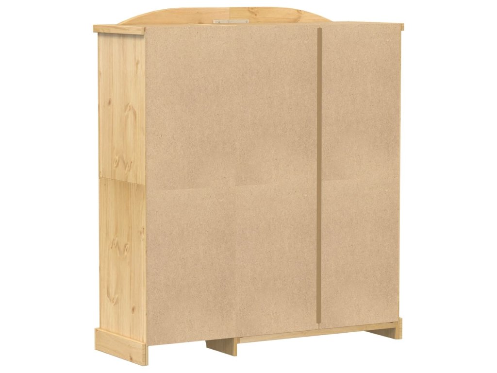 - Masivní borové dřevo: Masivní borové dřevo je krásný přírodní materiál. Borové dřevo má rovnou kresbu a obsahuje suky, které materiálu dodávají jeho charakteristický, rustikální vzhled. Skříňka je vyrobena z masivního borového dřeva a je odolná a robustní.