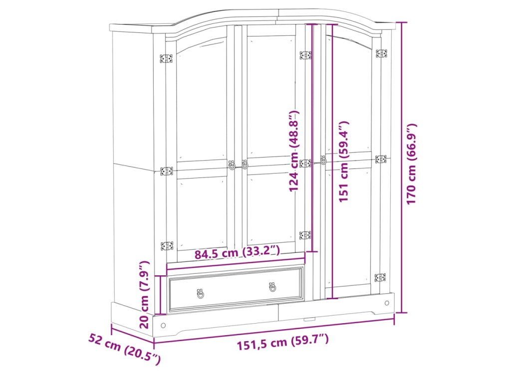 - Rozměry: 151,5 x 52 x 170 cm (Š x H x V)