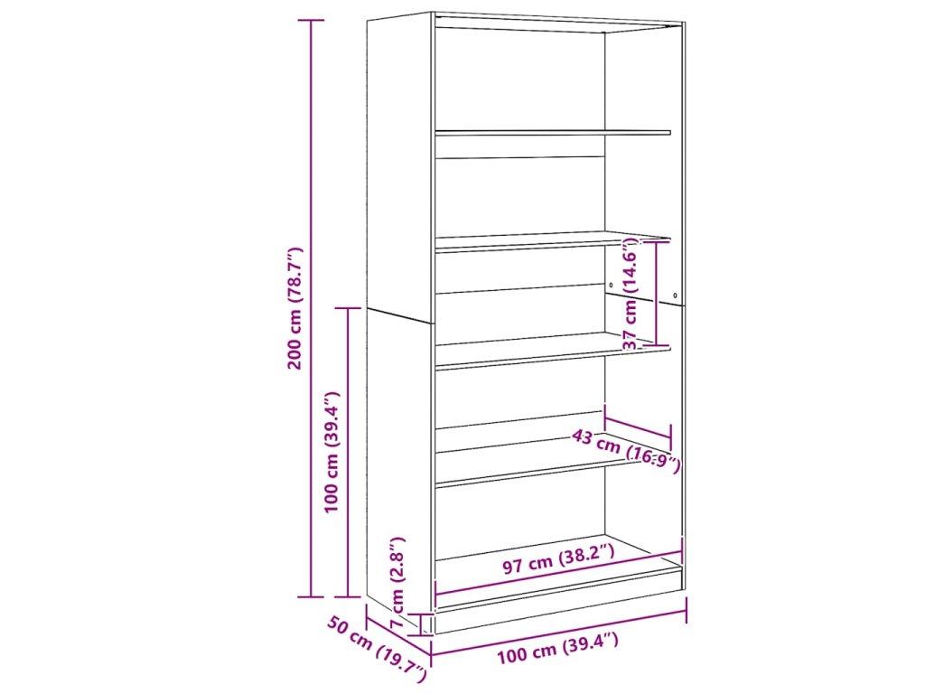 - Rozměry: 100 x 50 x 200 cm (Š x H x V)