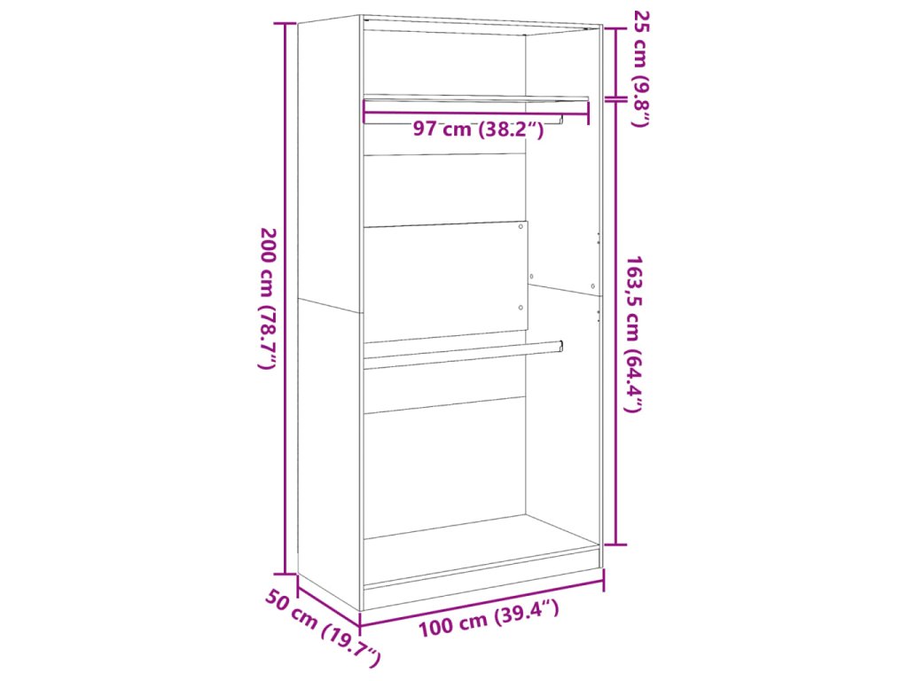 - Rozměry: 100 x 50 x 200 cm (Š x H x V)