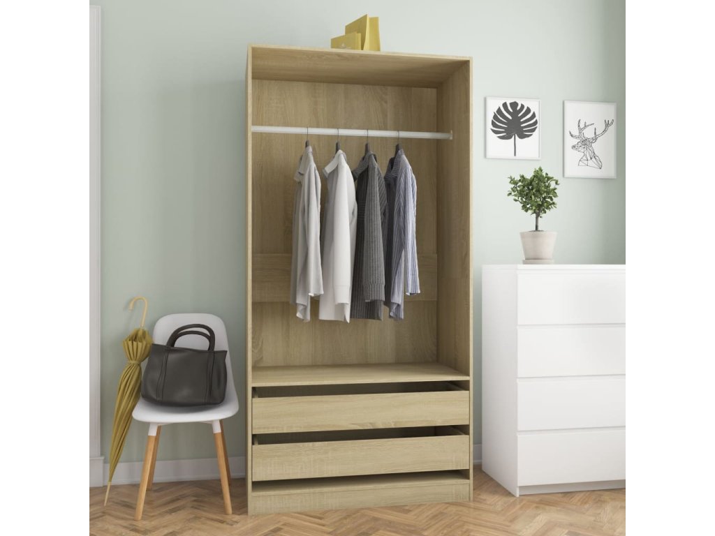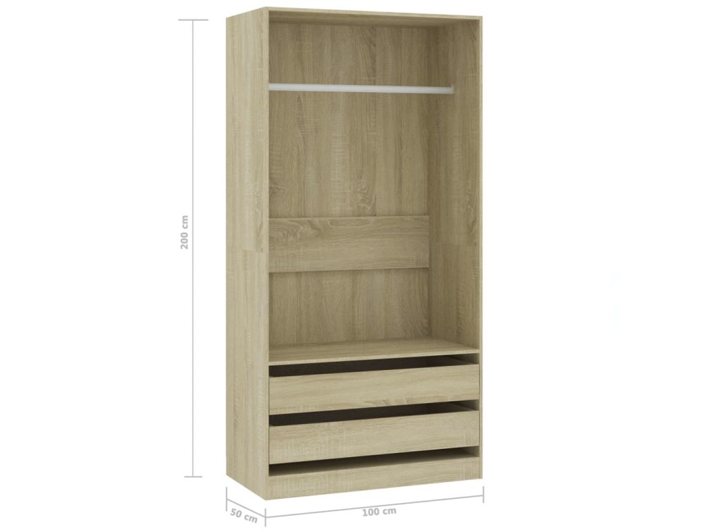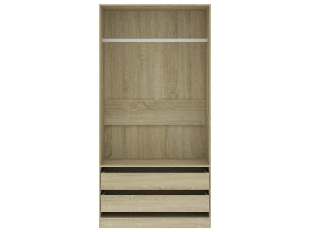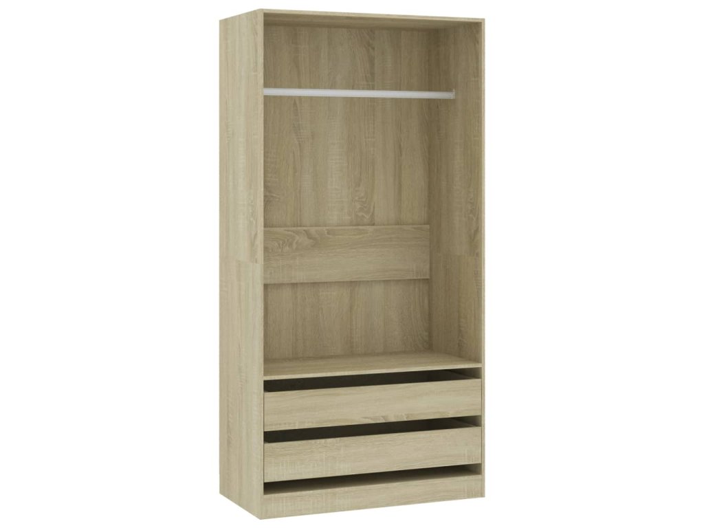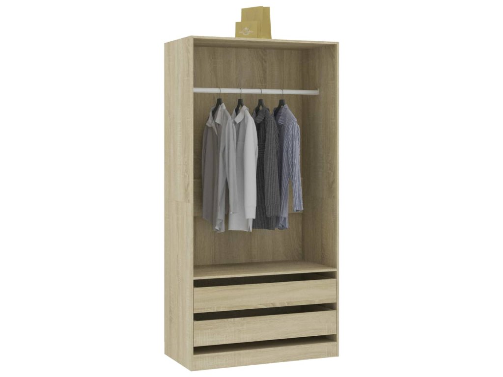 Šatník je vyrobený z desky, která je zárukou pevnosti, odolnosti a dlouhé životnosti. Uvnitř se nachází 2 zásuvky a 1 velká přihrádka s šatní tyčí. Najdete zde tudíž úložný prostor jak pro zavěšení delších oděvů, tak k uložení poskládaného oblečení, jako jsou svetry či džíny, a menších doplňků, například klobouků, kabelek atd.