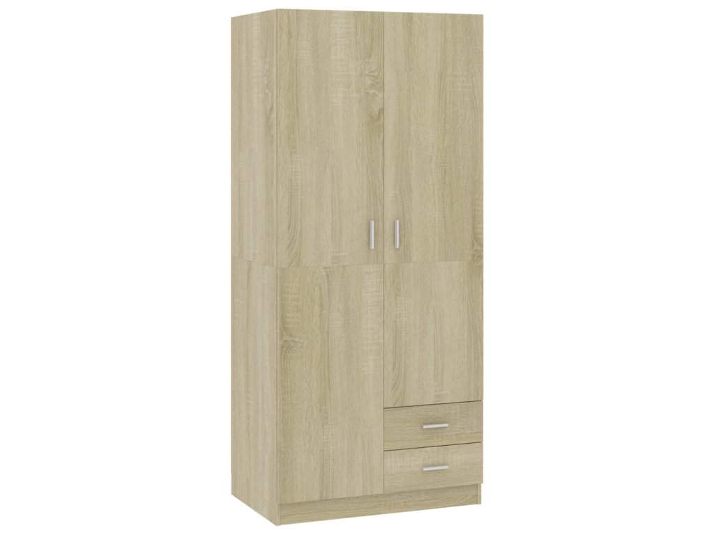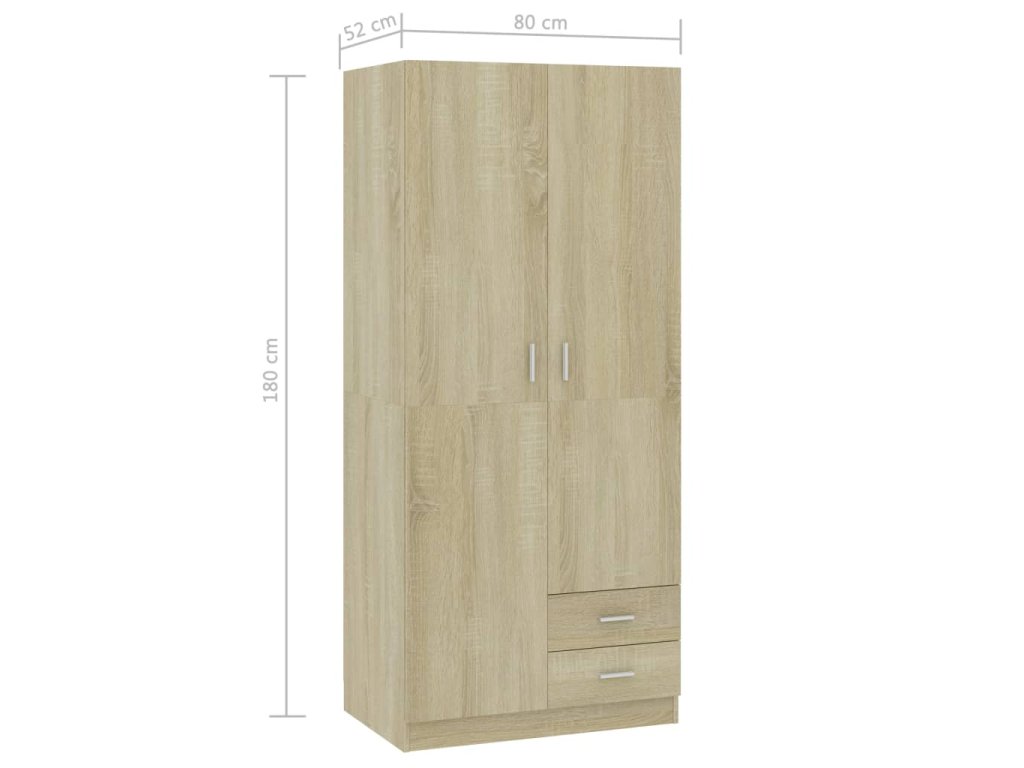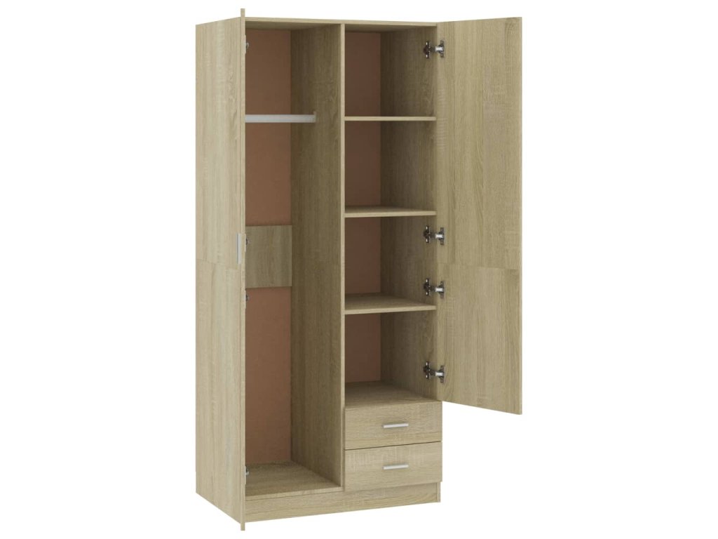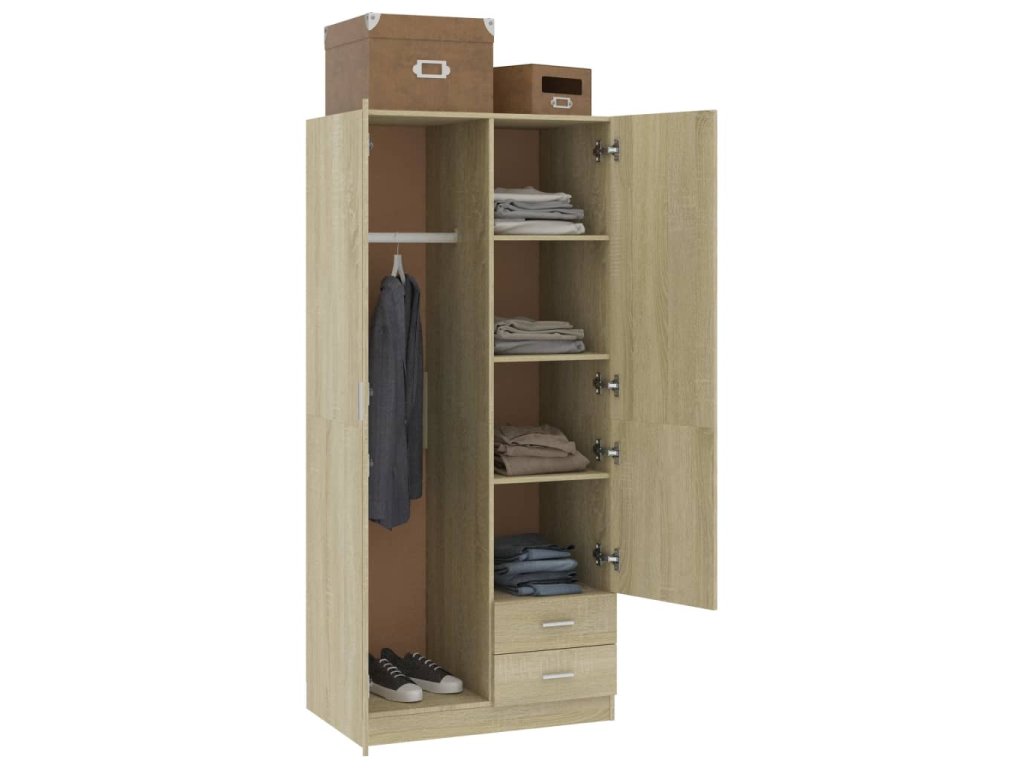Šatník je vyrobený z prémiových kompozitní dřevo, které jsou zárukou pevnosti, odolnosti a dlouhé životnosti. Uvnitř se nachází 2 zásuvky a velká přihrádka s šatní tyčí. Najdete zde tudíž spoustu prostoru jak pro zavěšení delších oděvů, tak i k uložení poskládaného oblečení, jako jsou svetry či džíny, a menších doplňků, například klobouků, kabelek atd.