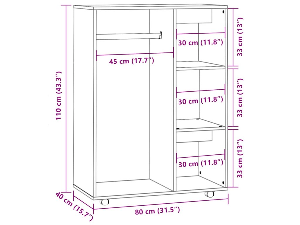 - Rozměry: 80 x 40 x 110 cm (D x Š x V)