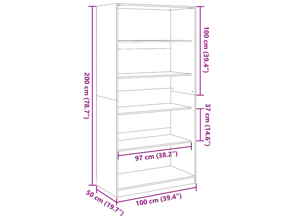 - Rozměry: 100 x 50 x 200 cm (Š x H x V)