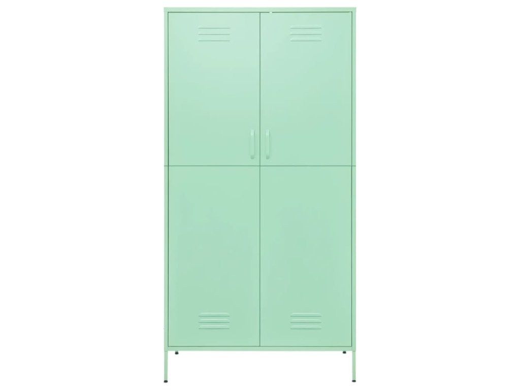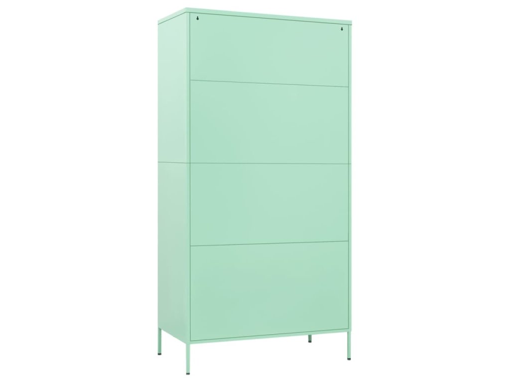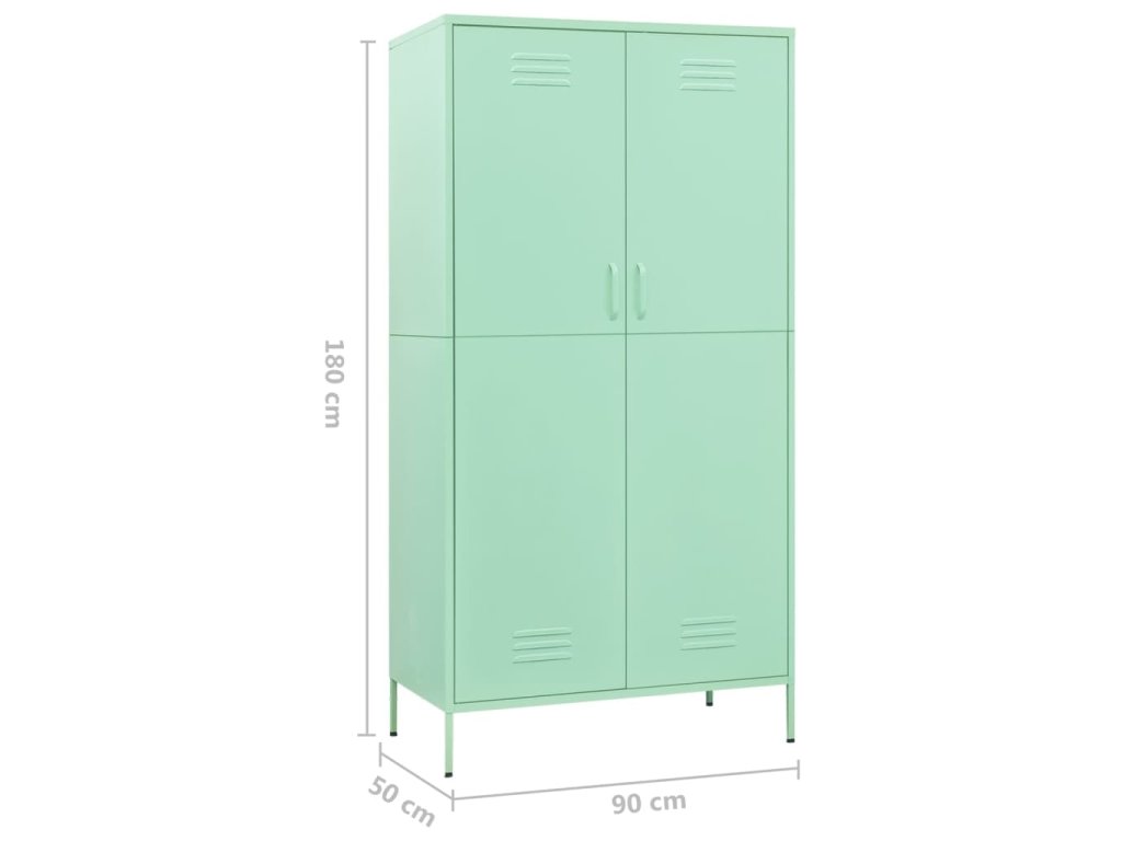 Šatní skříň je vyrobena z oceli, takže je odolná a snadno se čistí. Uvnitř se nachází 4 nastavitelné police a 1 velká přihrádka s šatní tyčí. Najdete zde tudíž úložný prostor jak pro zavěšení delších oděvů, tak k uložení poskládaného oblečení, jako jsou svetry či džíny, a menších doplňků, například klobouků, kabelek atd.