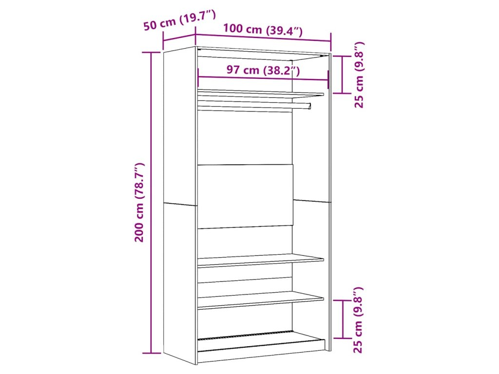 - Rozměry: 100 x 50 x 200 cm (Š x H x V)